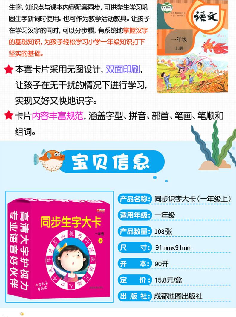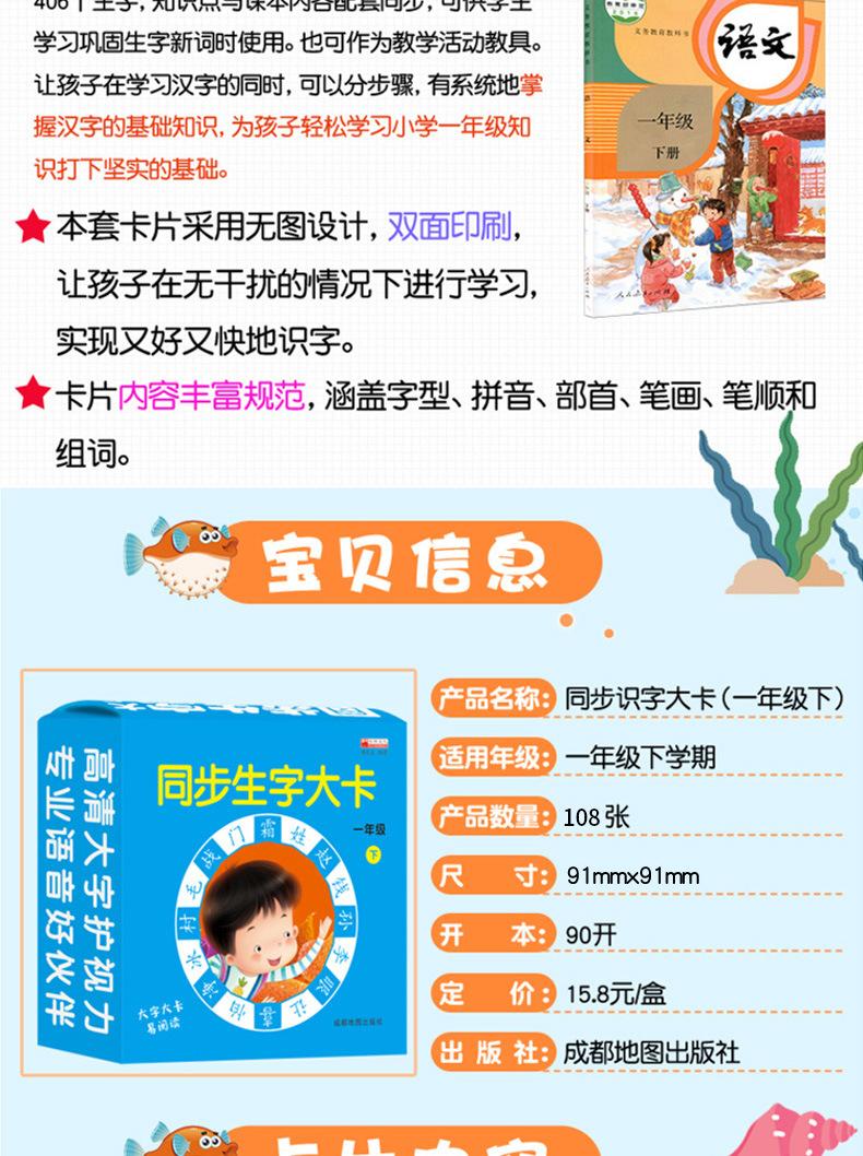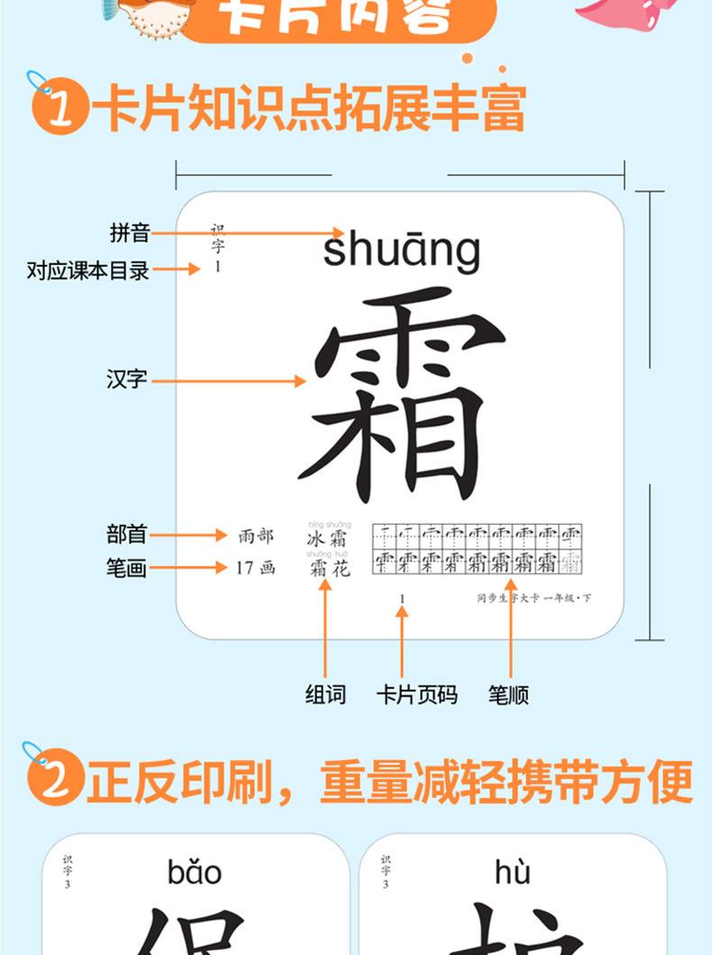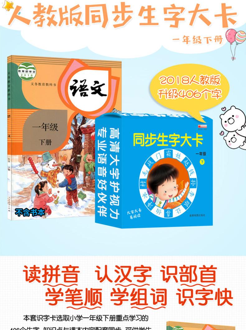 Sincronizando caracteres chineses e cartões grandes para as crianças verem imagens Cartões de alfabetização Pinyin Estrutura de traço radical Composição de palavras Primeira série Primeira série Segundo livro