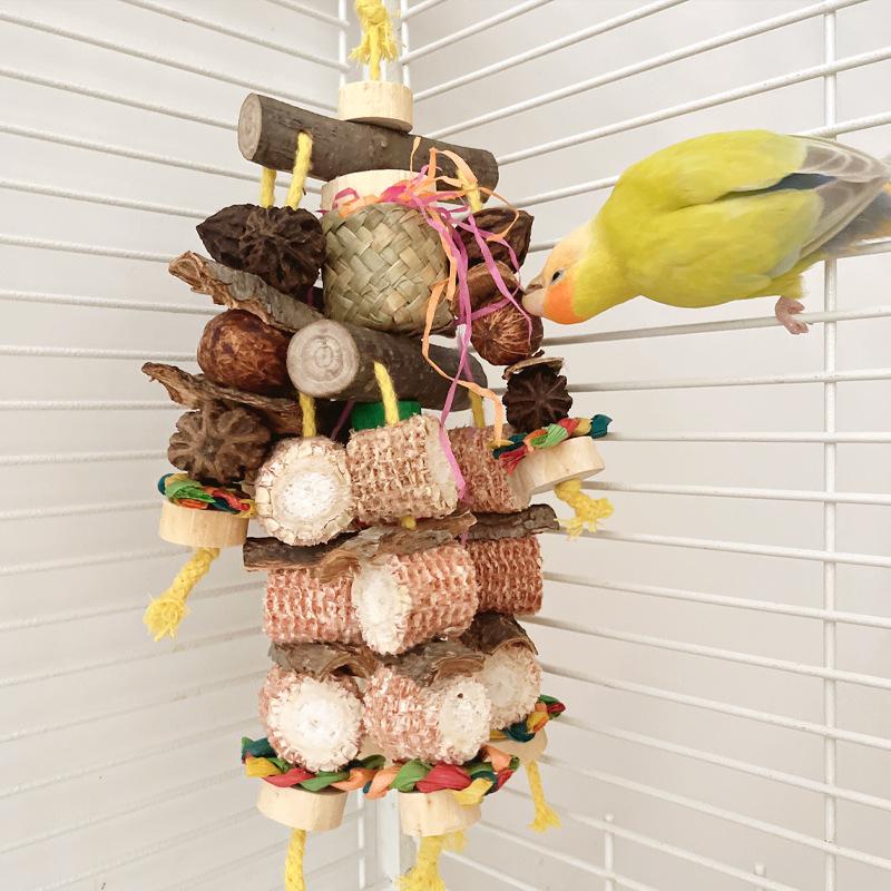 Brinquedo de Papagaio Grande da Amazônia Combinação de Pássaro Morde e Rasga para Destruir a Madeira Sólida Estação Haste Cor Lágrima Cordão de Mordida de Papel