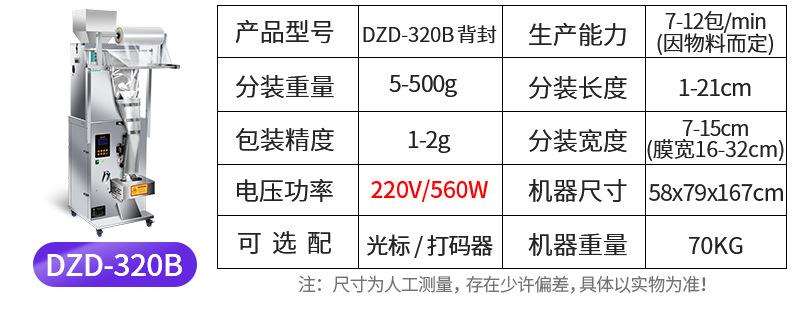 Máquina de embalagem de pó vertical de máquinas Daxiang Medicina chinesa grânulo comida chá parafuso selo traseiro embalagem sub-máquina quantitativa