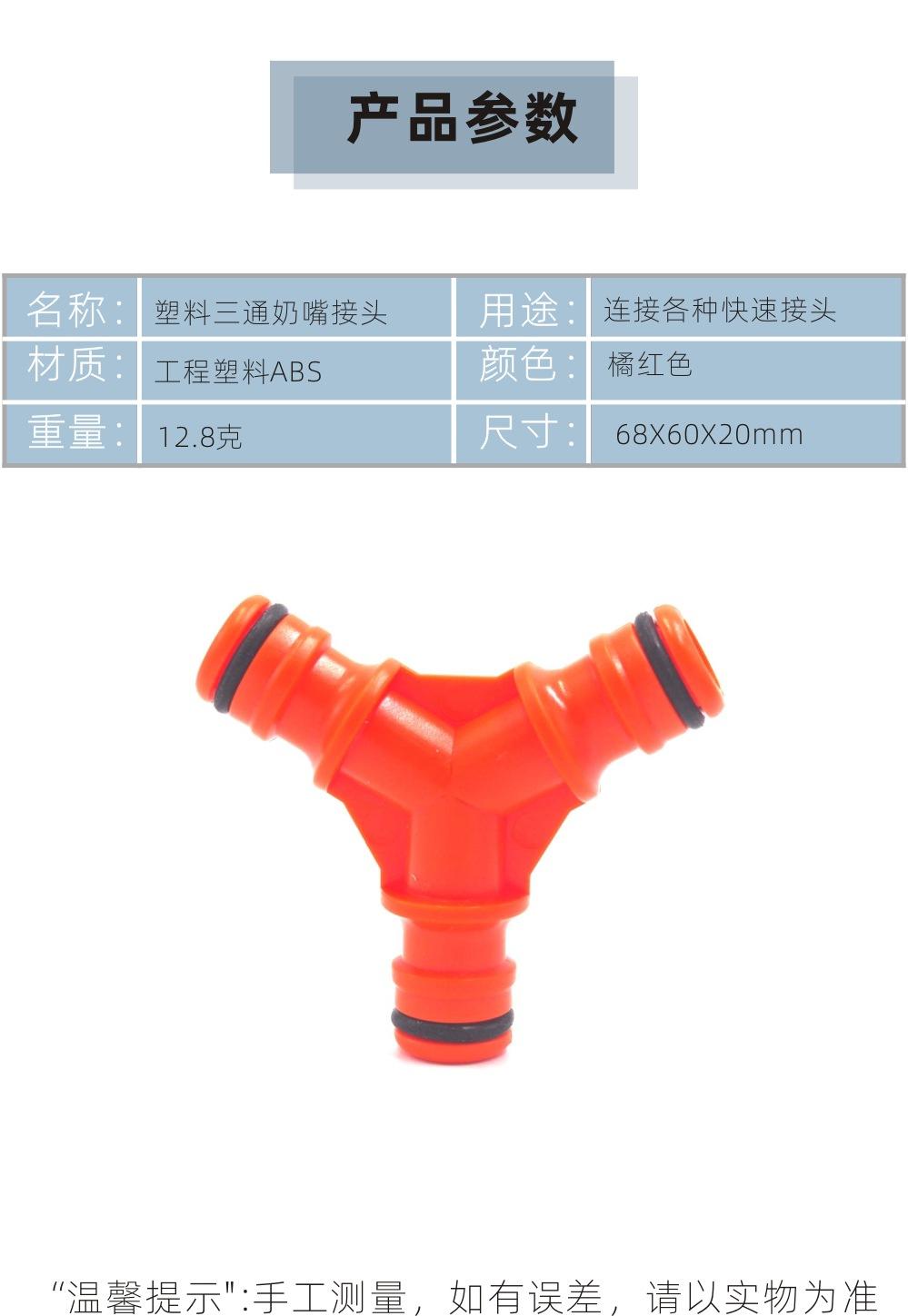 Conector de mamilo de três vias tipo Y de plástico para cano de água de jardim, desviador rápido um para dois, vendas diretas da fábrica