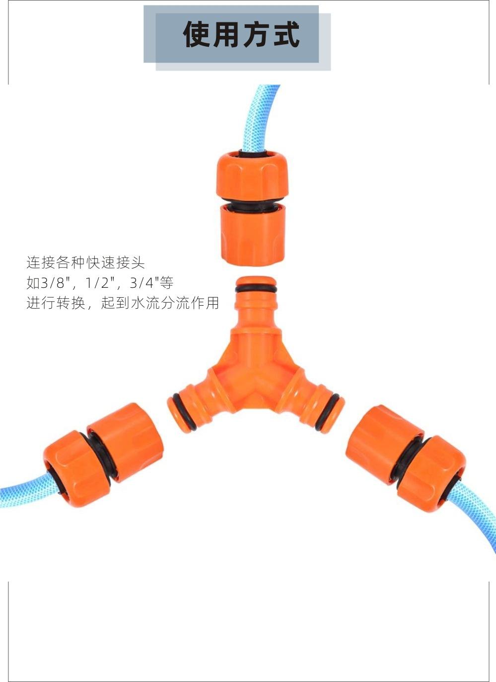 Conector de conexão em T de plástico em forma de Y para cano de água de jardim, desviador rápido um-dois, cabeçote de conversão transfronteiriço da Amazon