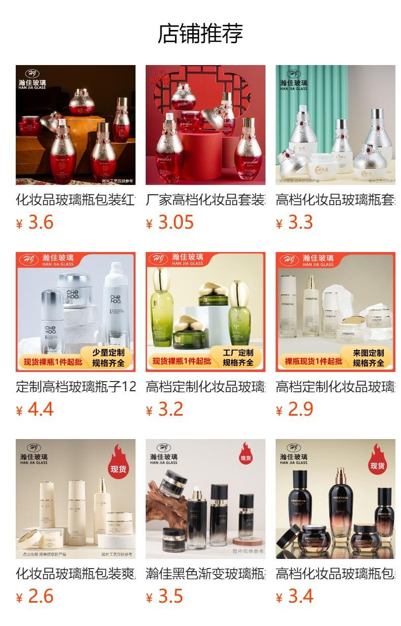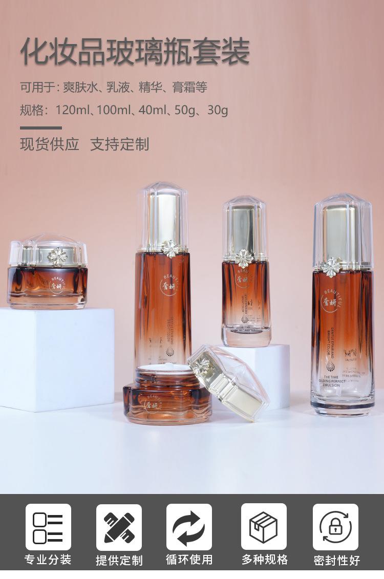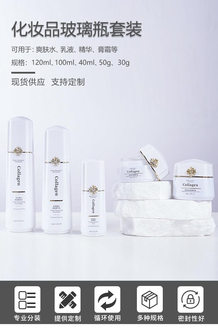 Conjunto de Frascos de Vidro para Cosméticos de Alta Qualidade Frasco para Essência Loção 30-50g Pote de Creme Embalagem Frasco Vazio para Cuidados com a Pele