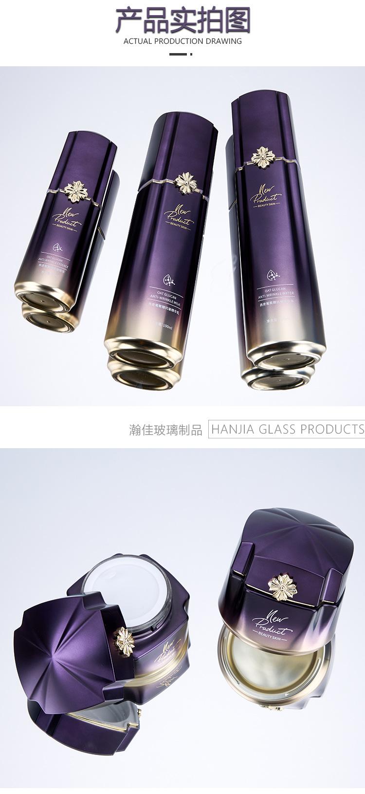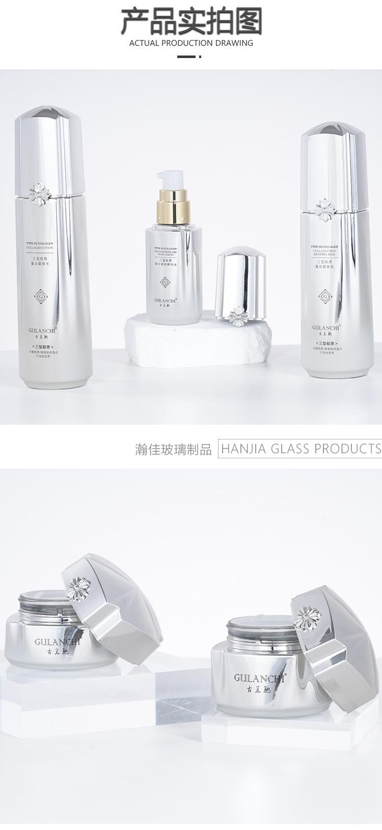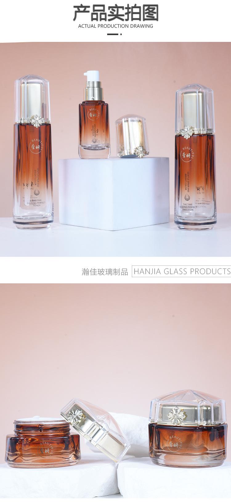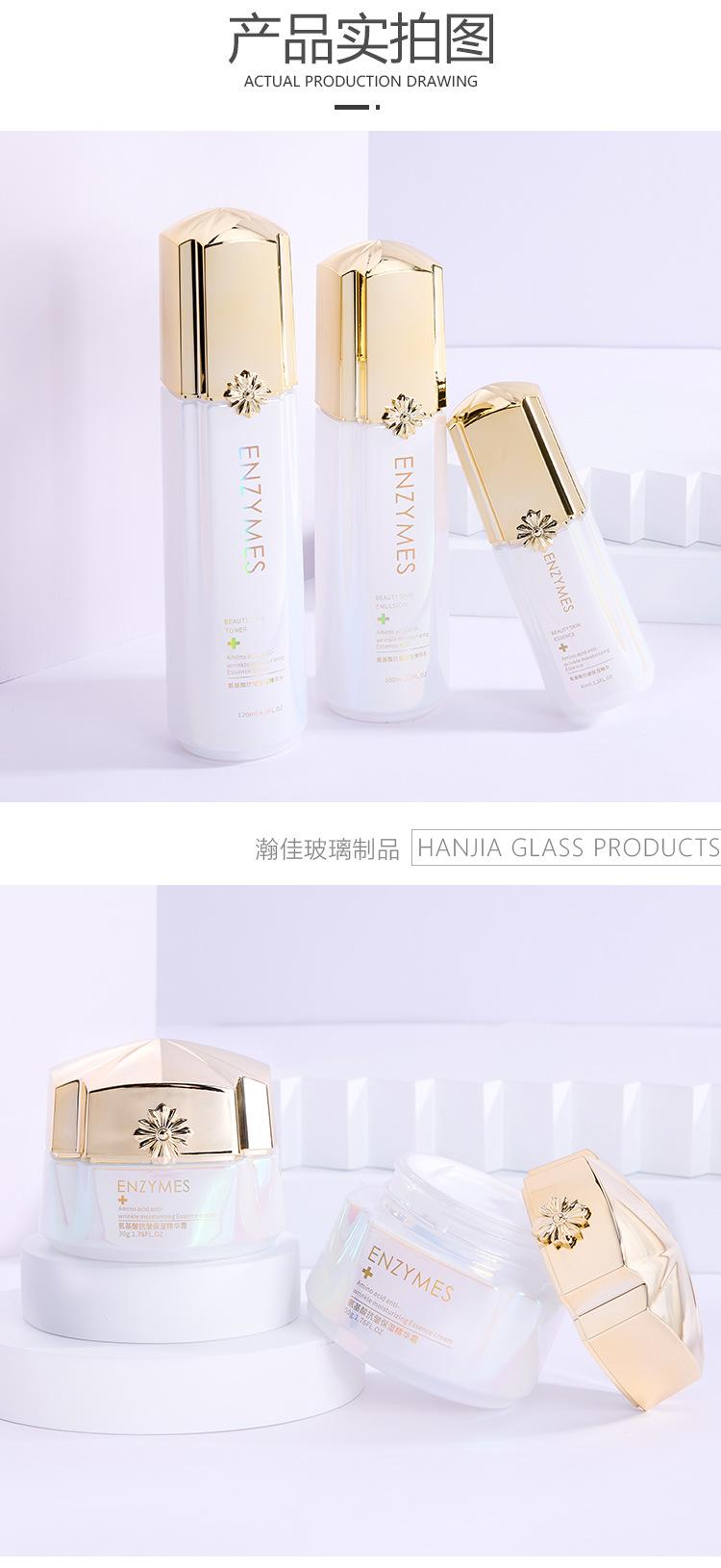 Conjunto de Frascos de Vidro para Cosméticos de Luxo, Frasco para Tônico, Essência, Loção, Óleo Essencial, Frasco para Creme Cosmético Atacado