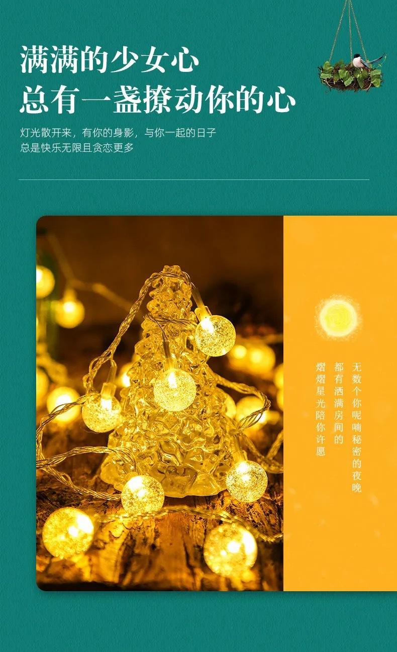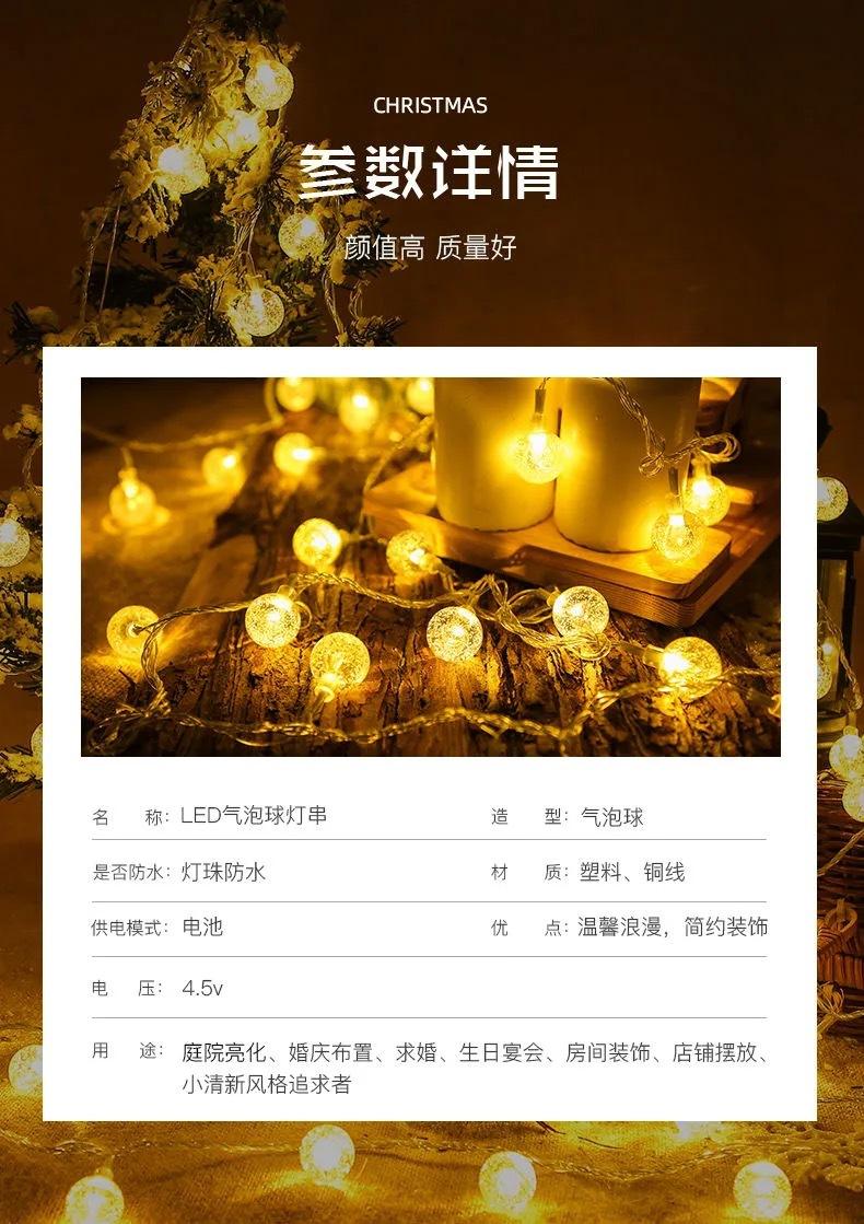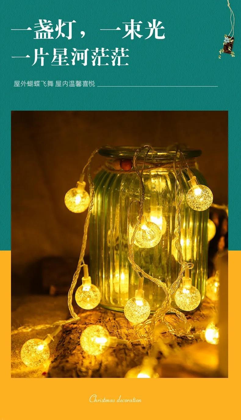 LED bola de cristal corda de luz Bola de bolha luz redonda do grânulo decoração do casamento ao ar livre menina coração luzes coloridas férias ins luzes de Natal