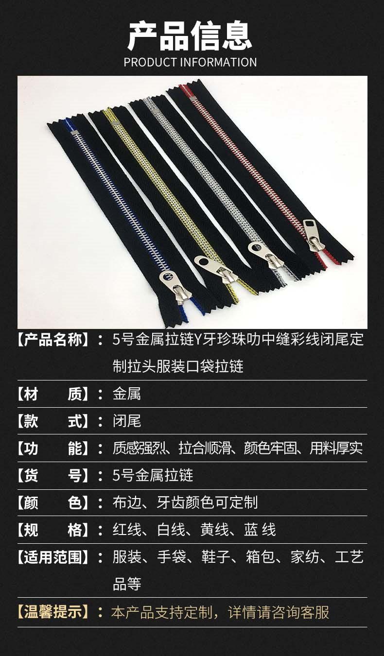 Compre Fornecimento direto da fábrica Não. 5 zíper de metal Pérola Pérola Y dente costura média cor fio fechado cauda high-end puxar cabeça bolso de roupas zíper no atacado no Joom.pro