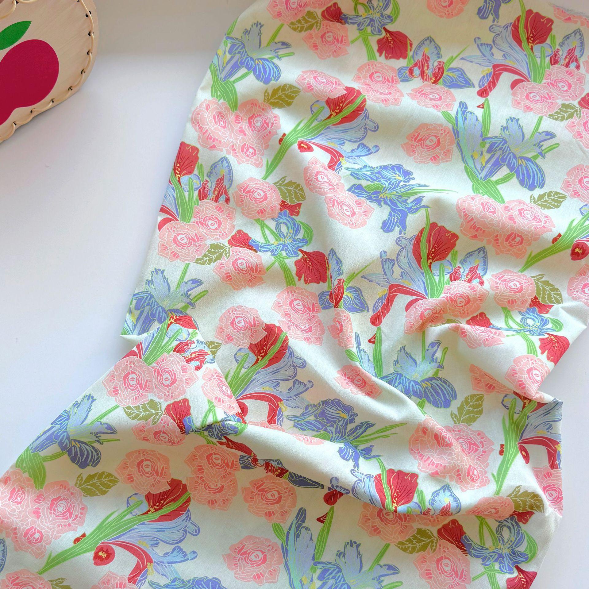 Algodão 40 tecido digital impresso grande francês flor tecido floral pano feminino roupas infantis pais-criança roupa doméstica