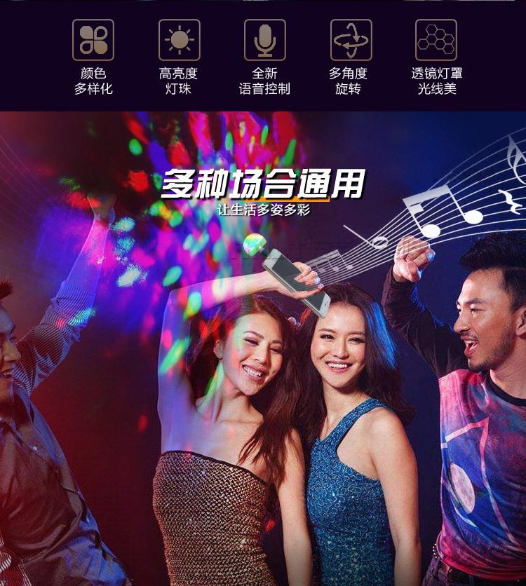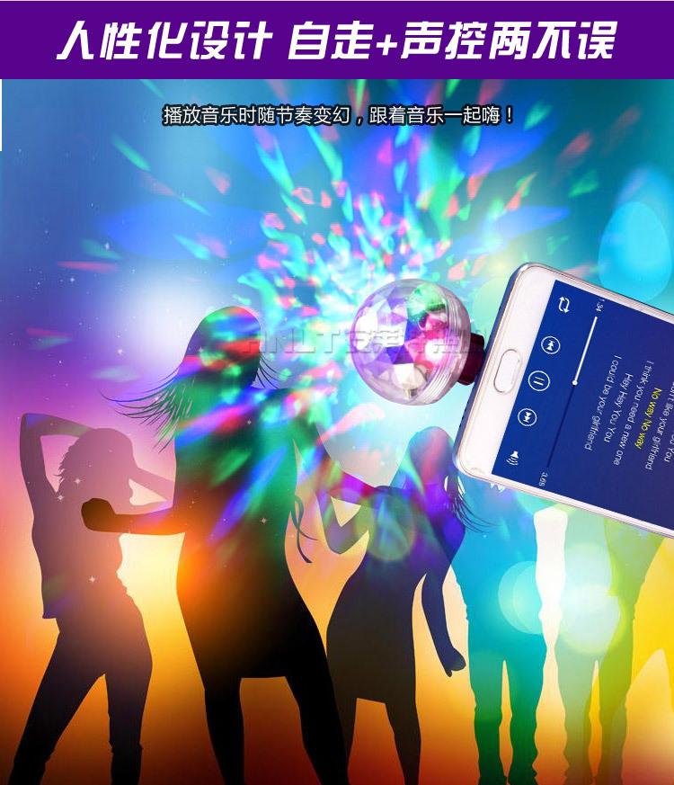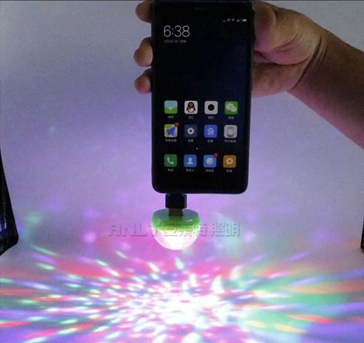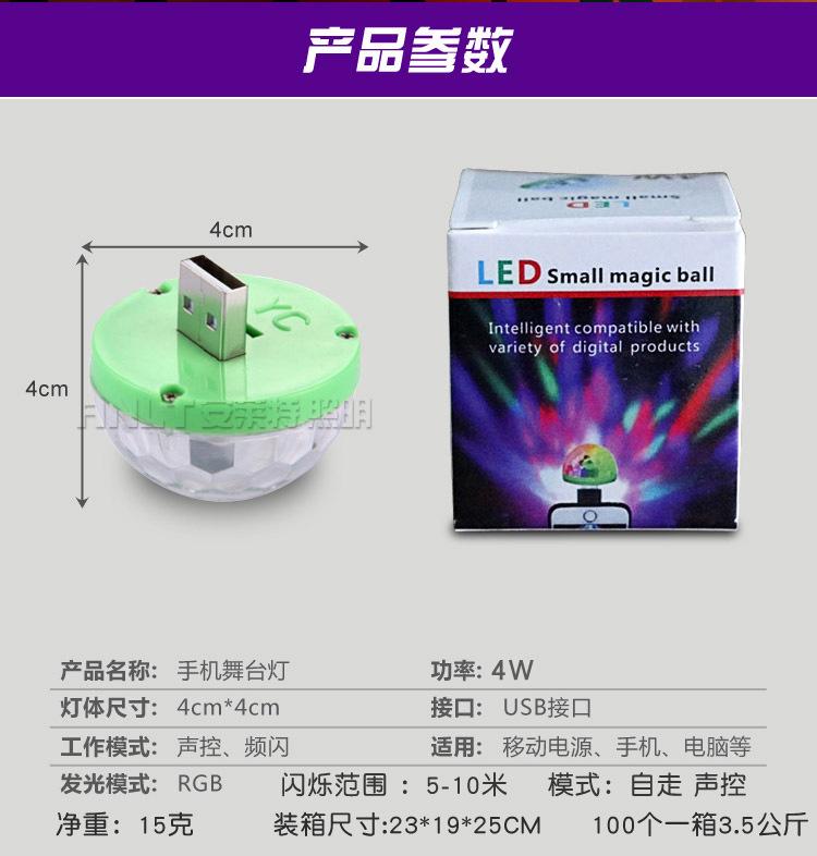 Compre Mini luz de palco com controle de voz, pequena bola mágica RGB, luz giratória para celular, USB, Android, Apple, luz de palco LED no atacado no Joom.pro