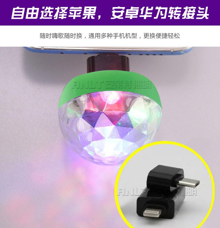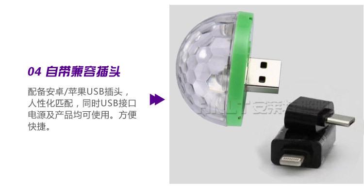 Mini luz de palco com controle de voz, pequena bola mágica RGB, luz giratória para celular, USB, Android, Apple, luz de palco LED