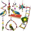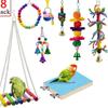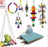 Brinquedos para mastigar papagaios brinquedos para pássaros balanço de trampolim fosco anel sino corda conjunto de 8 peças 270g