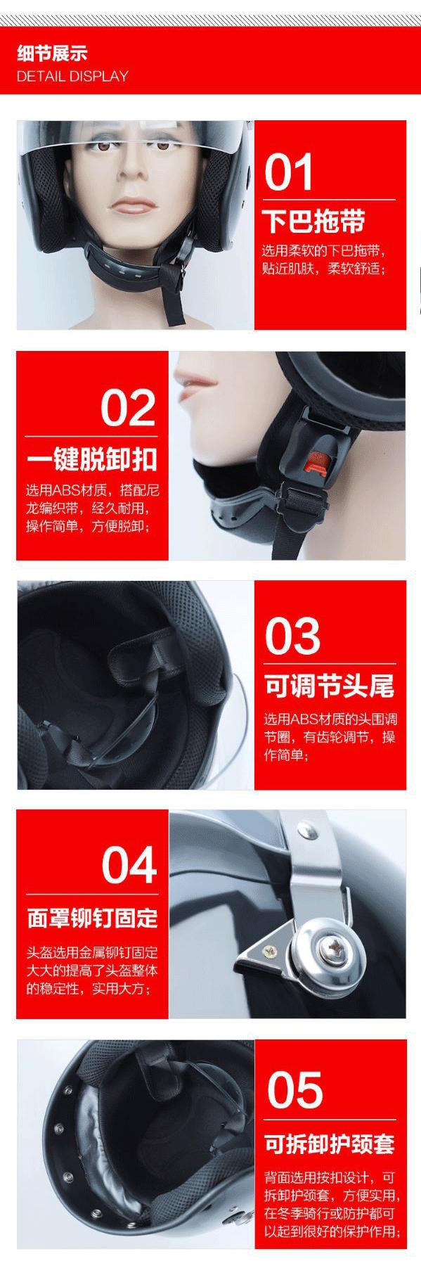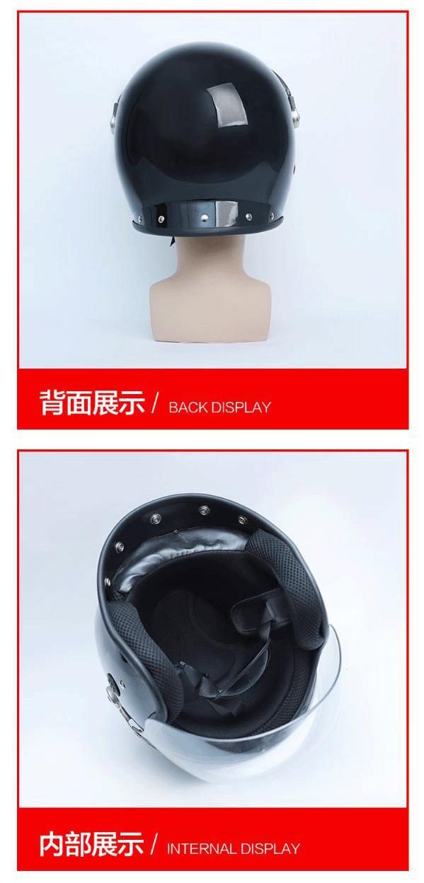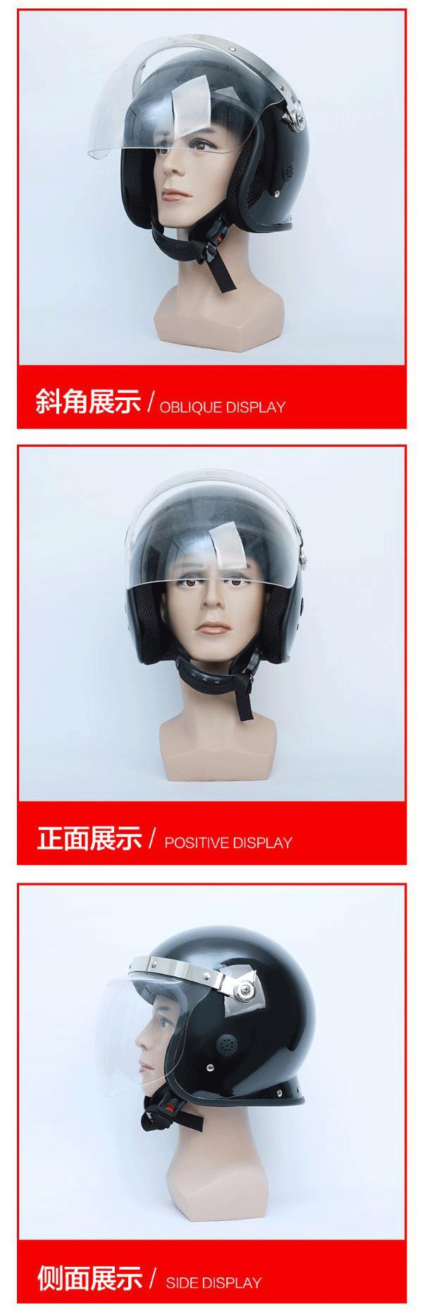 Estrutura: casco de capacete, máscara de PC transparente (2,5 mm), faixa impermeável selada, estrutura de metal fixa, orifícios laterais para audição e ventilação, proteção de couro para o pescoço, almofada interna de espuma, tecido que absorve o suor, fivela de liberação rápida, apoio de queixo.