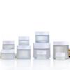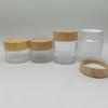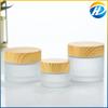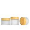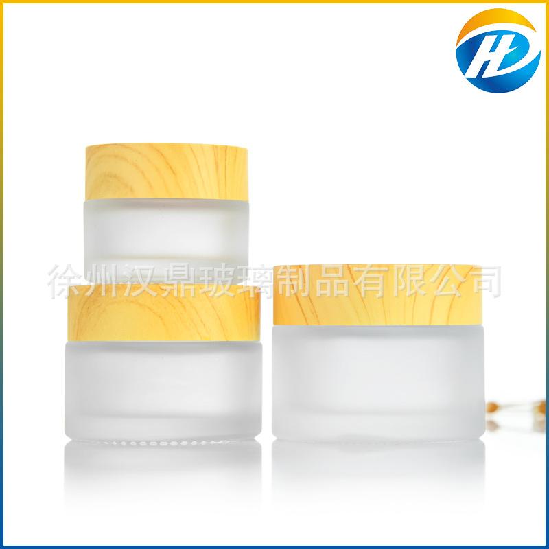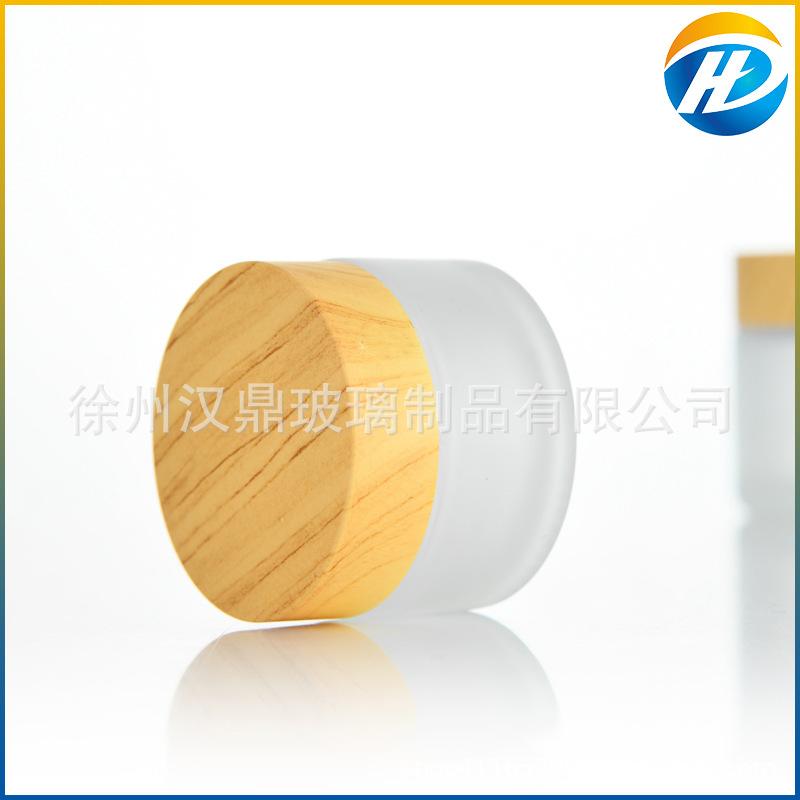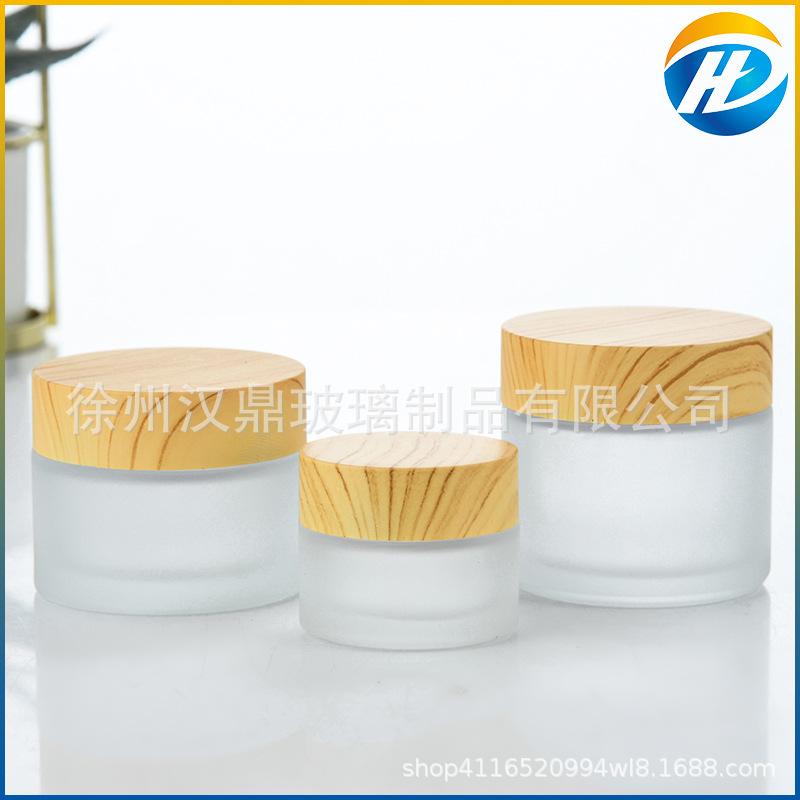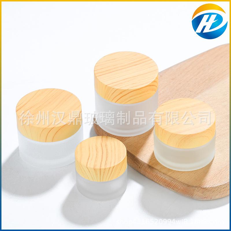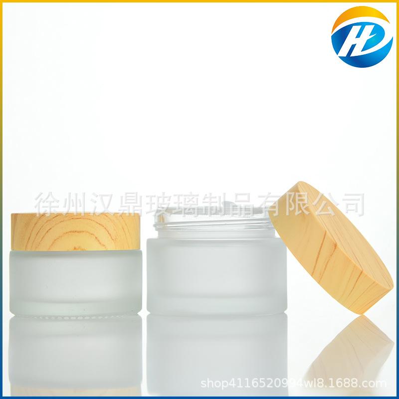 Frasco de creme de vidro fosco por atacado com tampa de madeira com textura de madeira, frasco de creme, frasco cosmético 30g50g, frasco para creme