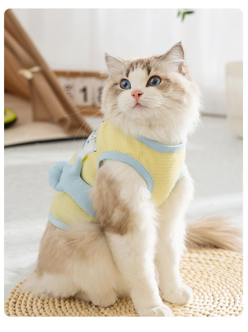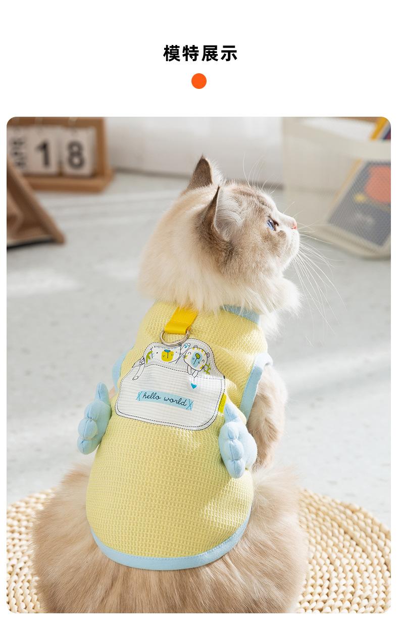 Primavera e Verão Gatos Bonito Dos Desenhos Animados Tridimensional Pequeno Mão Tração Colete Cão Pequeno Cão Pet Roupas De Pelúcia