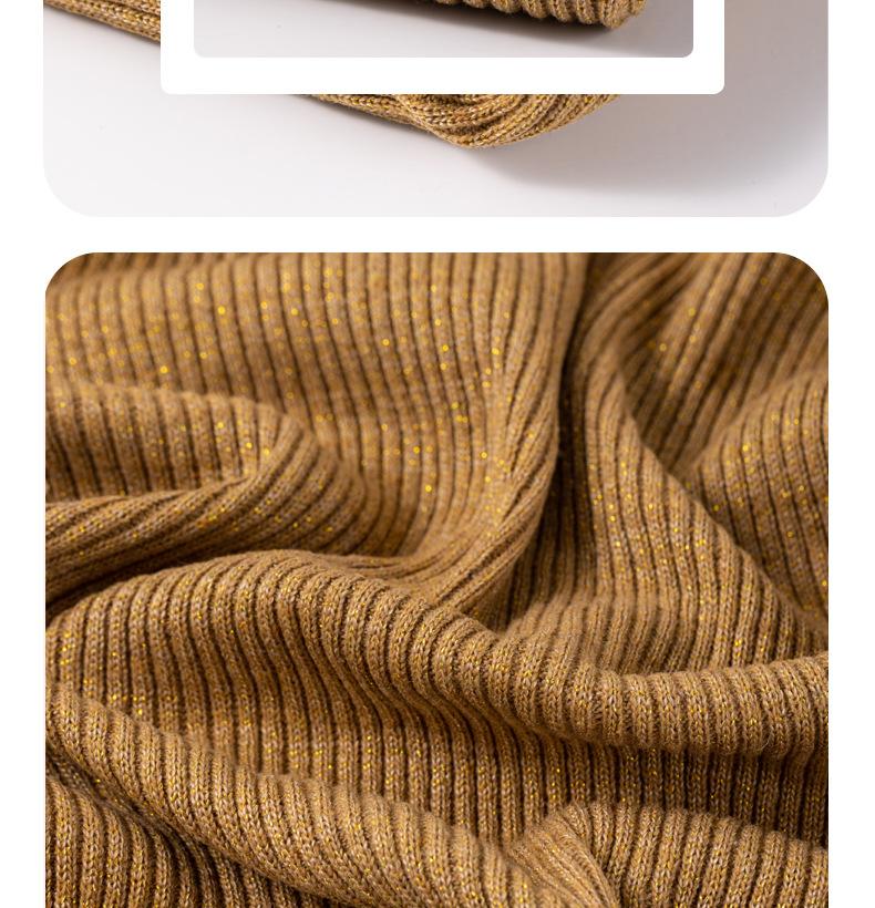 Ouro de seda poliéster algodão tecido misturado dupla face fio pit strip pano de lã de seda brilhante malha artesanato tecido de roupas micro elástico