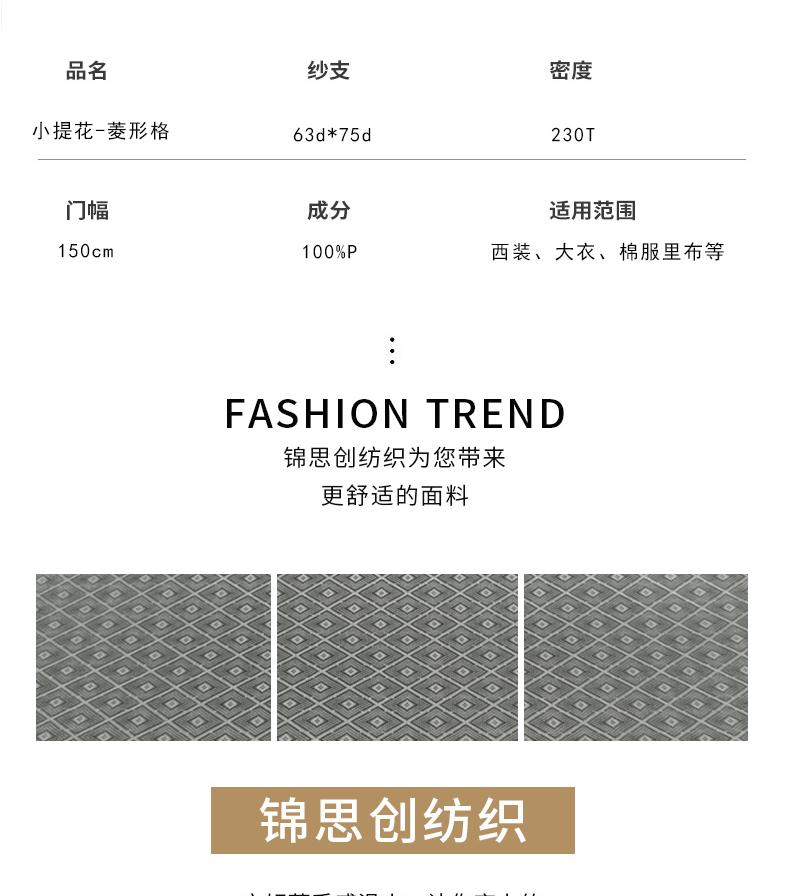 Tecido de Forro Tafetá de Poliéster Catiônico Jacquard Diamante para Paletós e Roupas, Forro Jacquard Clássico