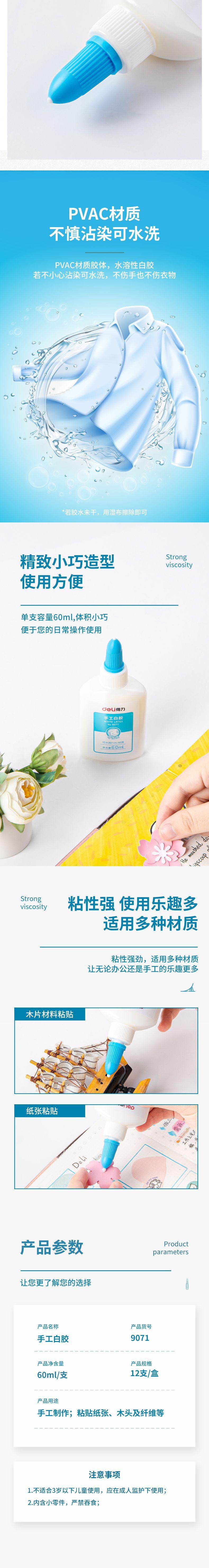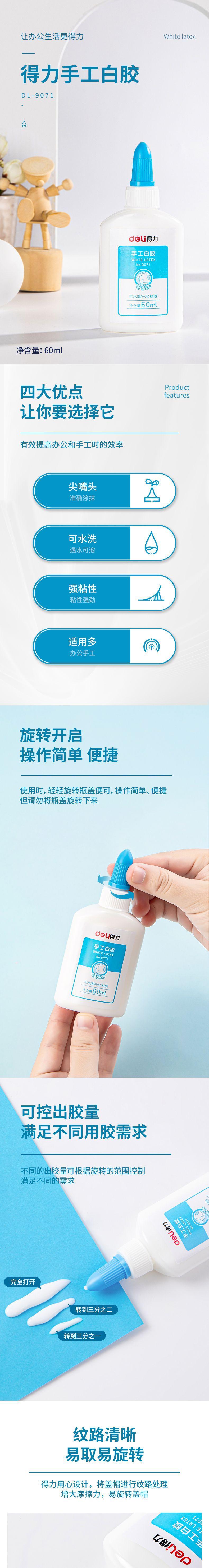Deli deli cola branca de látex branco água de secagem rápida adesivo de látex crianças DIY Carpintaria cola artesanal jardim de infância