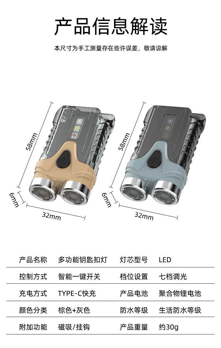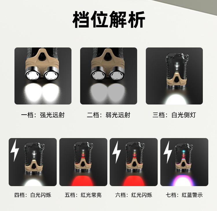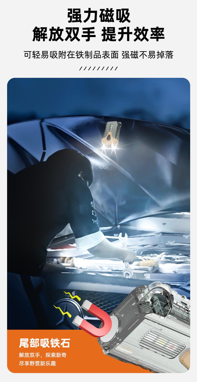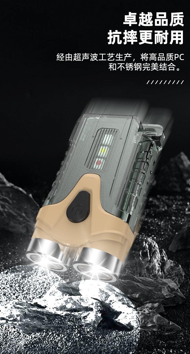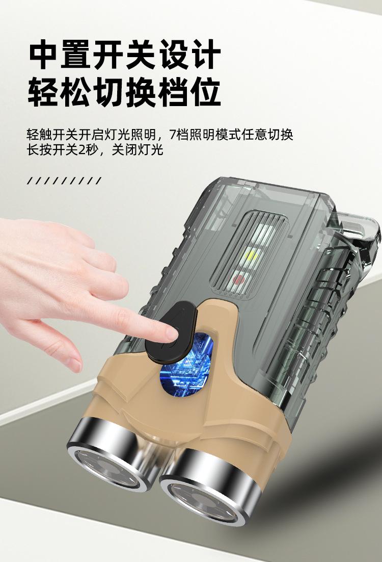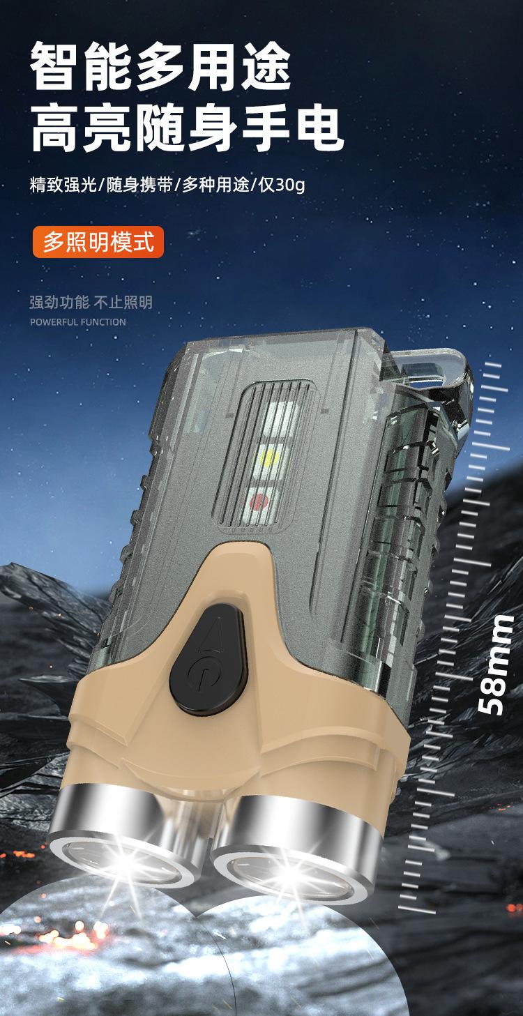 Cruze fronteira nova mini lanterna de luz dupla Type-C carregando luz de advertência de acampamento ao ar livre LED luz de chaveiro