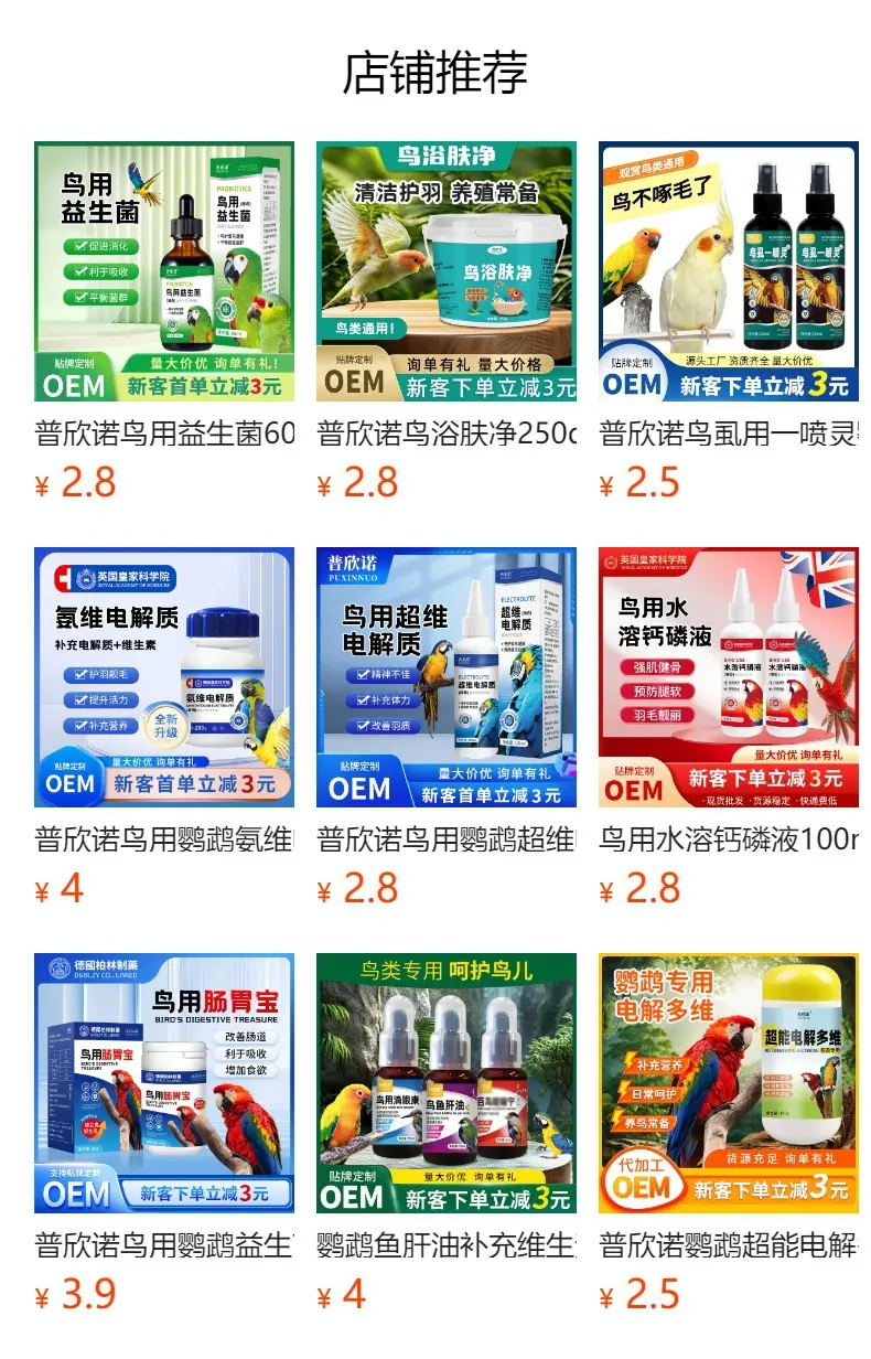 Bird electrolyte (100ml), Probiotics for birds (60ml), Bird phage (100ml), Calcium and phosphorus liquid for b...