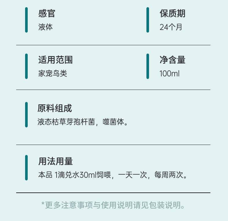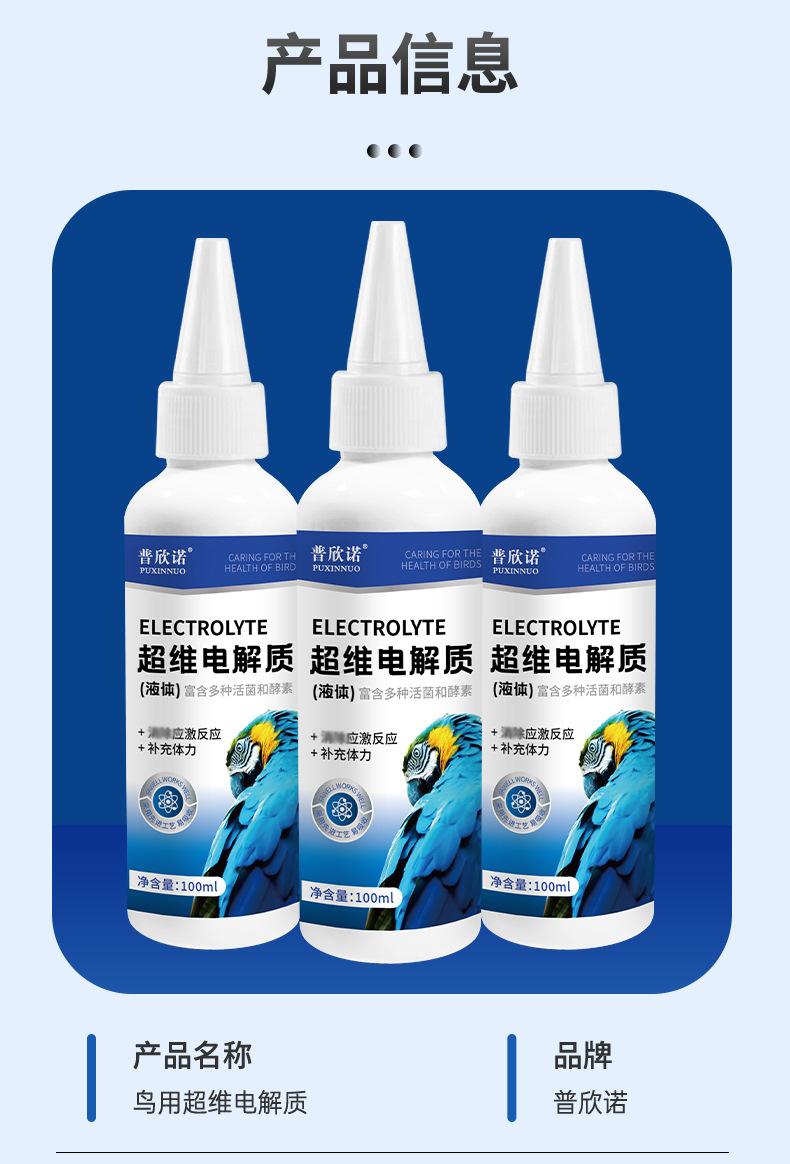 Probióticos para Aves, Bactérias Ativas para Papagaios, Eletrólitos Probióticos para Papagaios, 100ml, Atacado do Fabricante