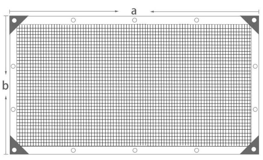 Artesanato do Produto: Malha preta com borda preta, malha verde com borda verde, esquema de cores de malha azul com borda azul, costura de seis linhas, espaçamento entre furos 1 metro.
