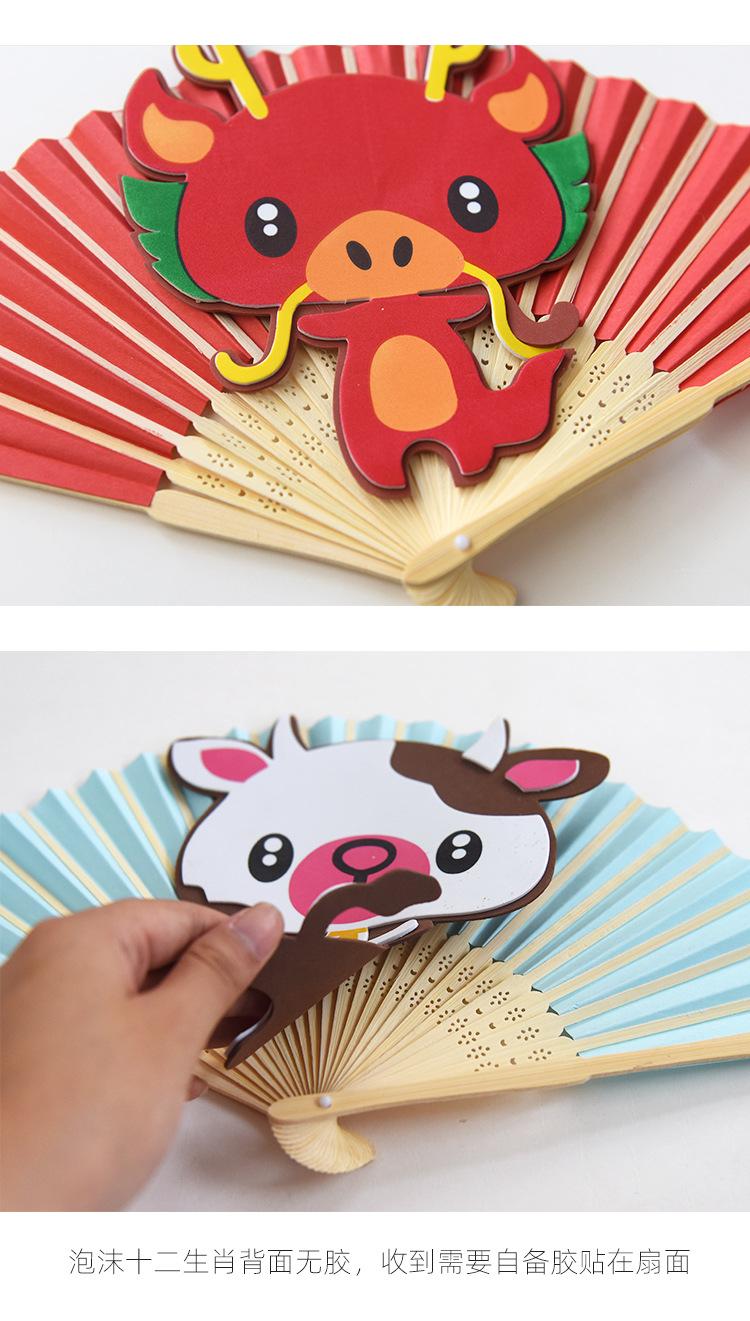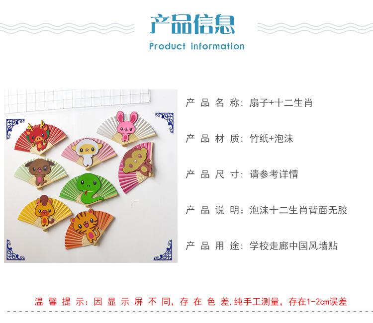 Decoração de suspensão criativa aérea de ventilador colorido do zodíaco chinês Decoração de parede de estilo chinês decoração de escola cena interna