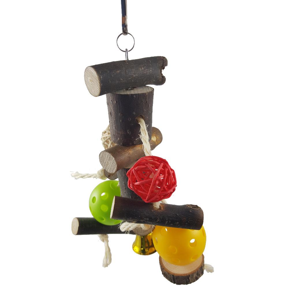 Brinquedos naturais da mordida do papagaio da madeira maciça dos pássaros com corda de madeira Amazon da mordida de couro