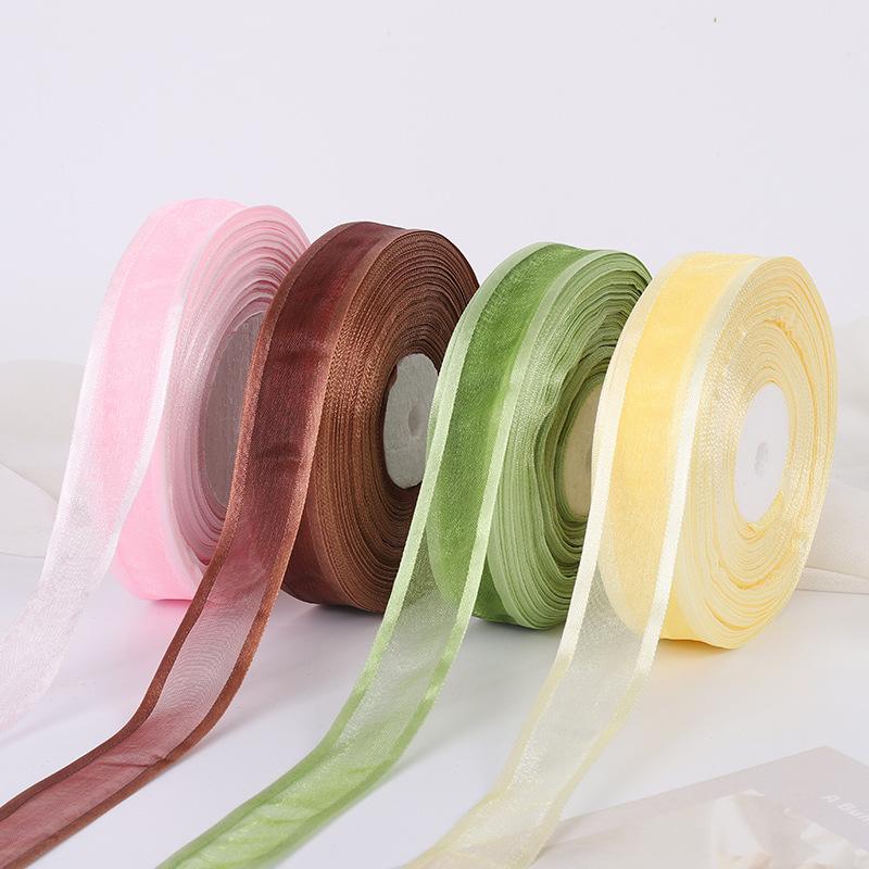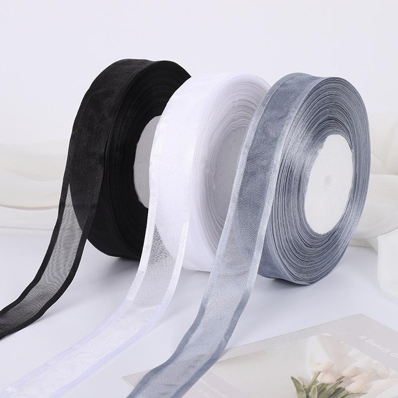 Fita de organza transparente com fio de neve de 2,5 cm de largura, fita, fita, flor de poliéster colorida, alça de bolsa, laço decorativo
