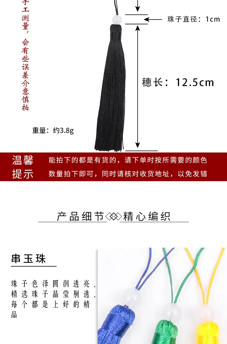 Frisado pequena borla borla DIY poliéster Ice Silk Nó Chinês Borla U disco borla do telefone móvel borla marcador borla atacado
