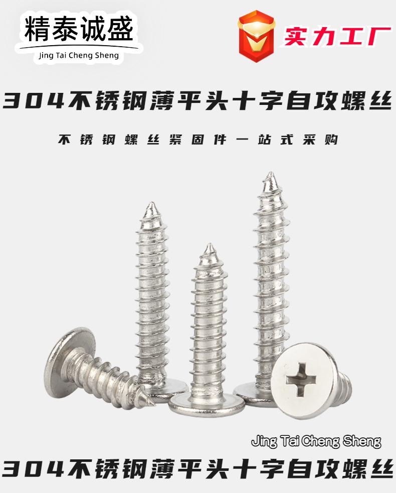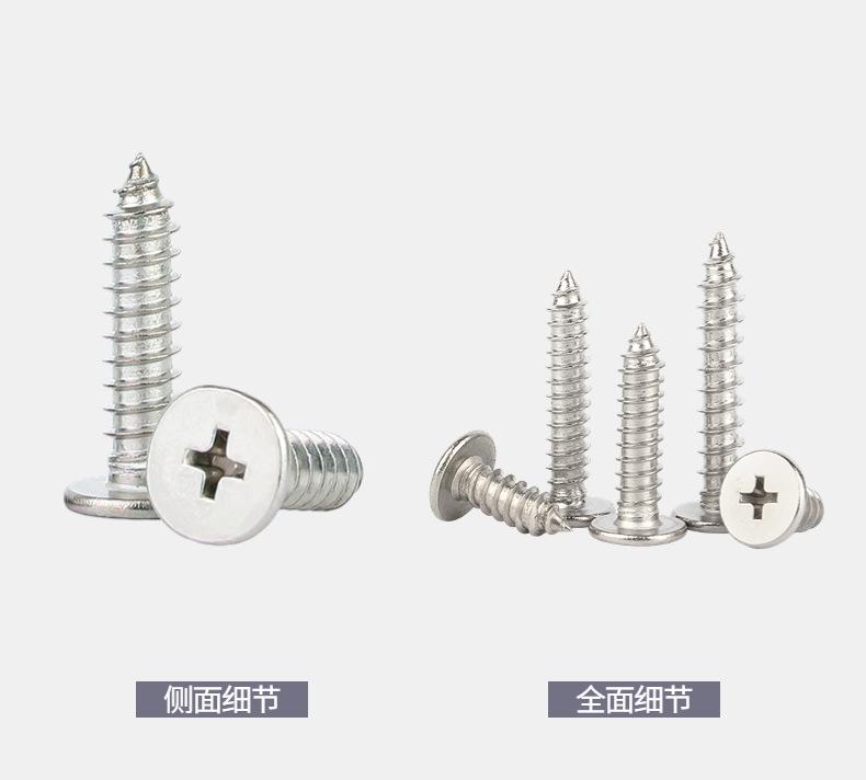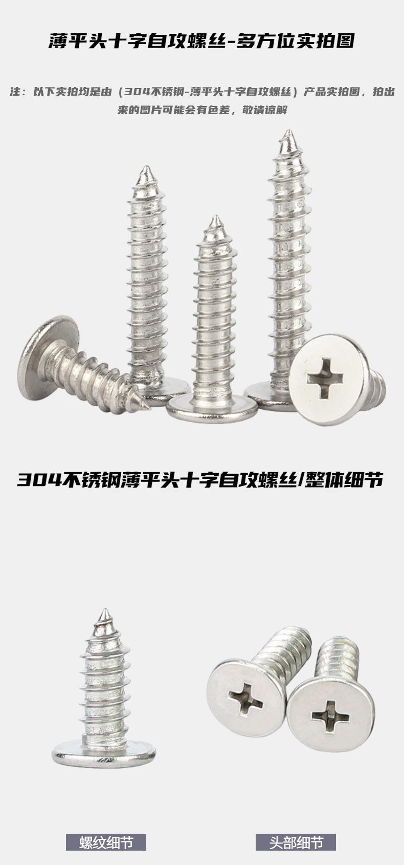 304 Parafuso Pequeno de Aço Inoxidável CA Parafuso Auto-roscante Cruzado de Cabeça Chata Grande Parafuso Auto-roscante Cruzado de Cabeça Chata Fina