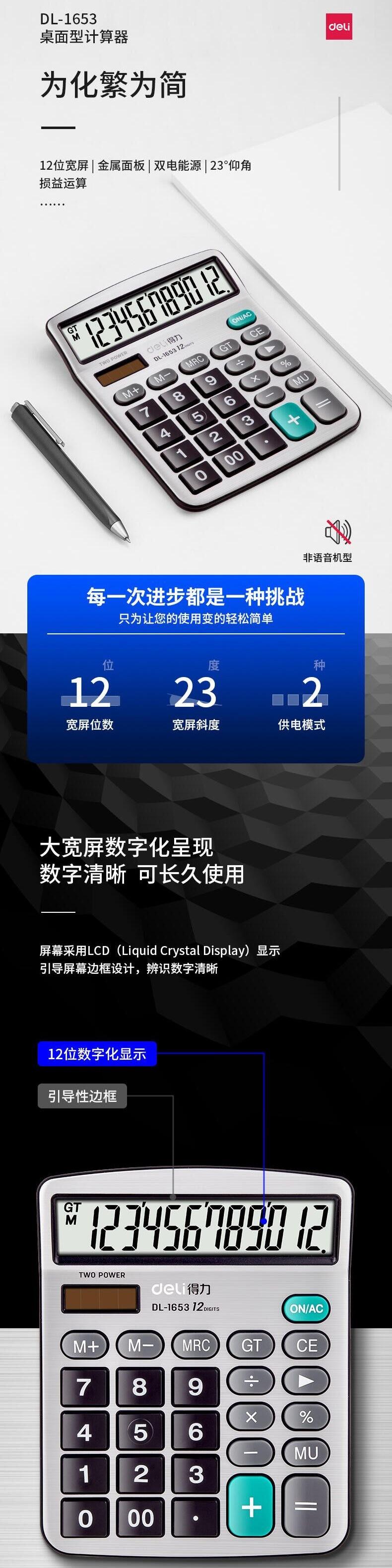 Compre Deli 1653 calculadora Banco solar 12-bit computador desktop Office finanças grande botão calculadora no atacado no Joom.pro