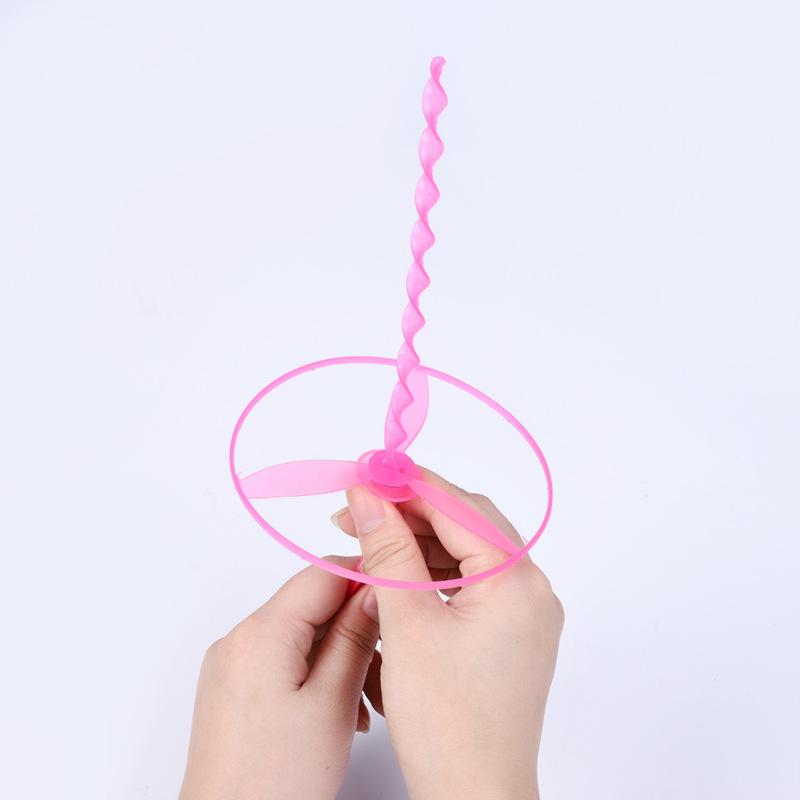 Até a parte inferior da alça de empurrar, aperte a manga de empurrar e empurre-a para cima com força, o frisbee girará e voará para o céu! Ele pode voar cinco ou seis metros de altura ou até mais longe. É um ótimo brinquedo para atividades ao ar livre!