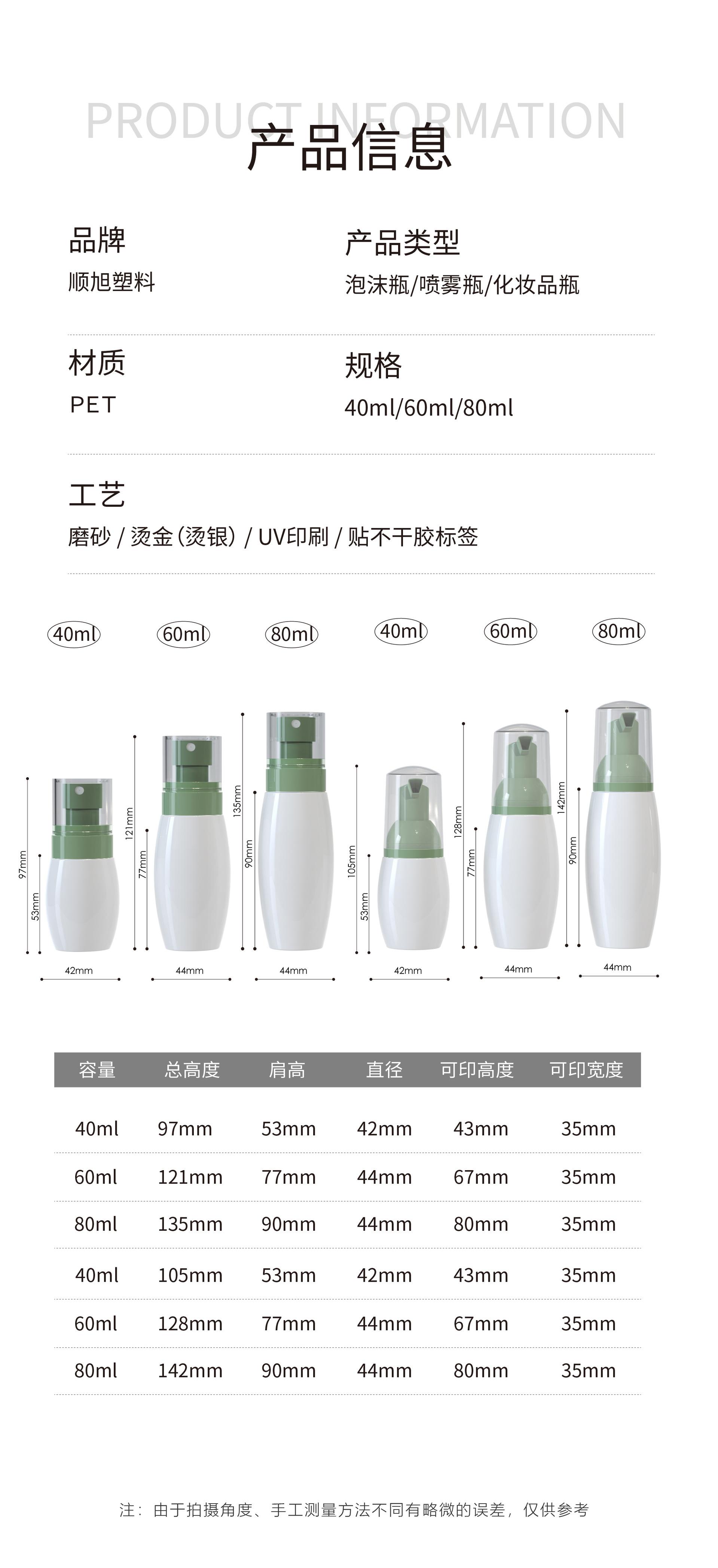 40ml; foam bottle; pet, 40ml; spray bottle; pet, 40ml; lotion bottle; pet, 60ml; foam bottle; pet, 60ml; spray...