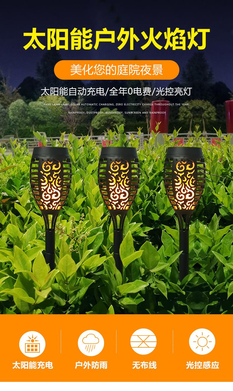 Lâmpada de chama solar Pátio ao ar livre Lâmpada de gramado à prova de chuva Jardim Villa Decoração de grama Lâmpada de tocha de corredor