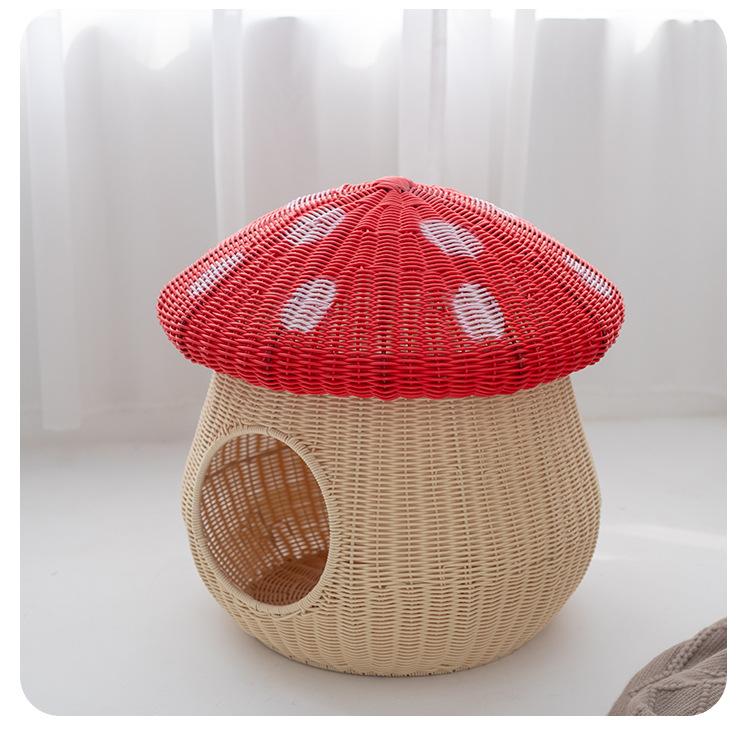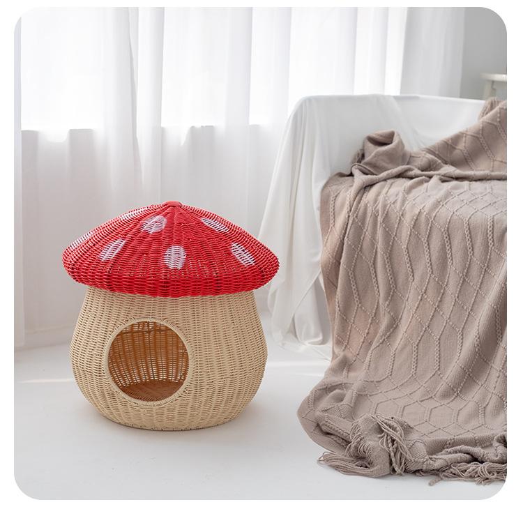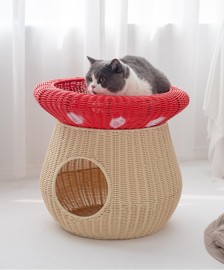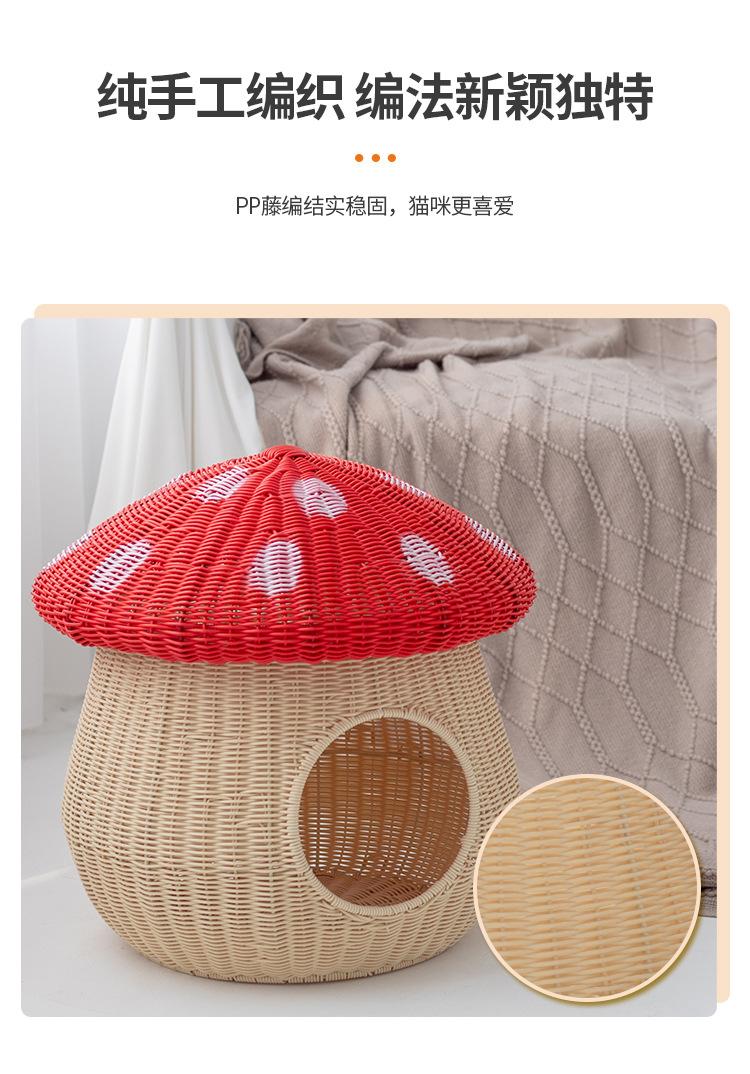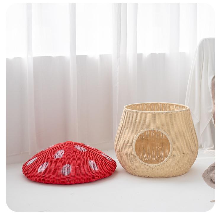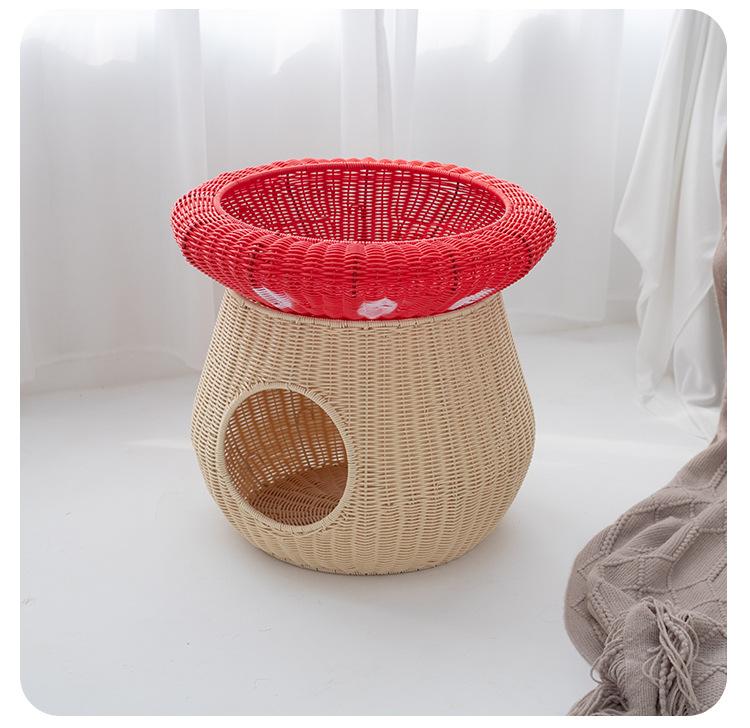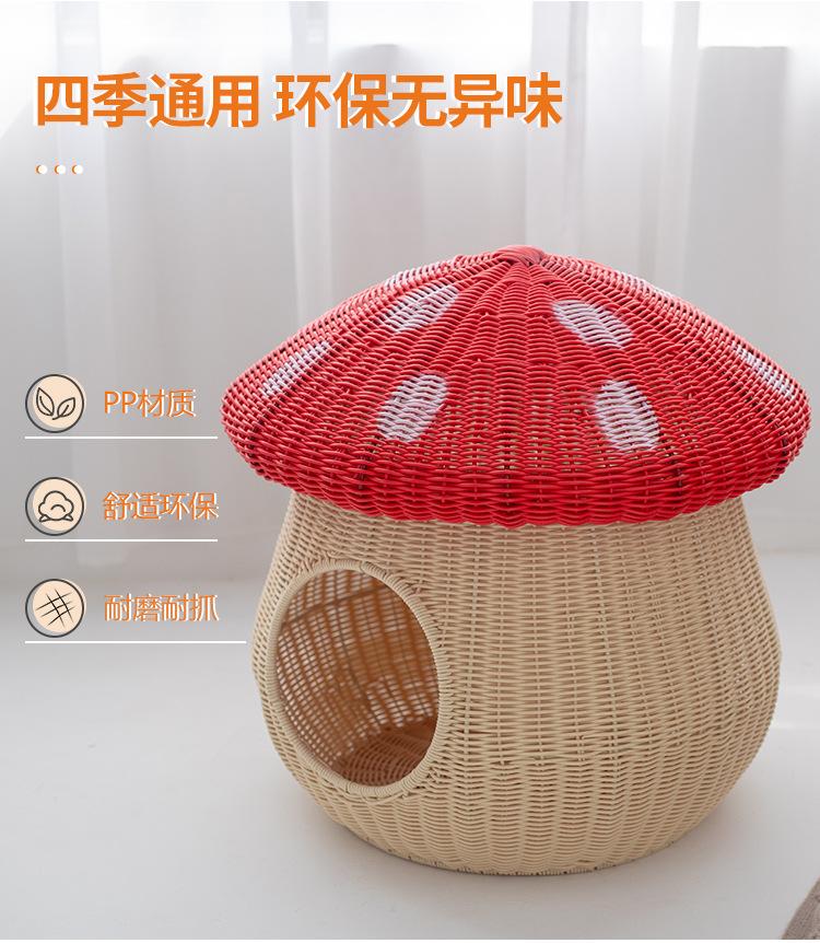 Compre Ninho de Gato de Vime Sintético, Villa Lavável Ninho Cogumelo para Animais de Estimação, Ninho de Cachorro Respirável de Vime Trançado à Mão Universal para Todas as Estações no atacado no Joom.pro