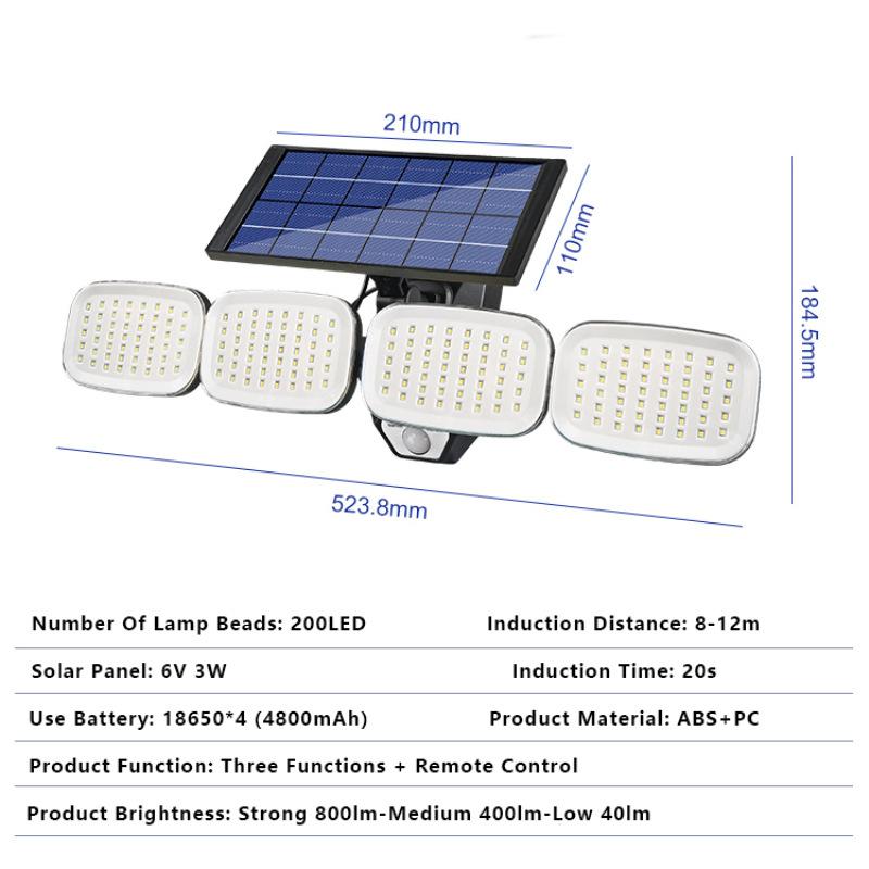 Nome do produto: Lâmpada de rua solar de quatro lados