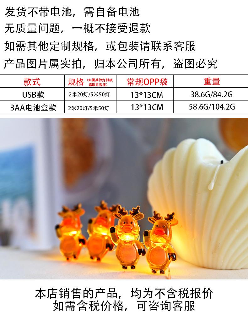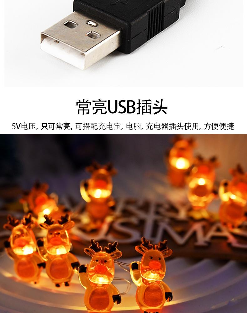 Nova corda de luz decorativa de Natal transfronteiriça de LED, luzes de feriado de alce de Natal, decoração criativa de quarto