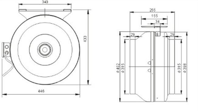 YWR 315 Ventilador de teto centrífugo coaxial de rotor externo silencioso com baixo ruído e grande volume de ar, economia de energia