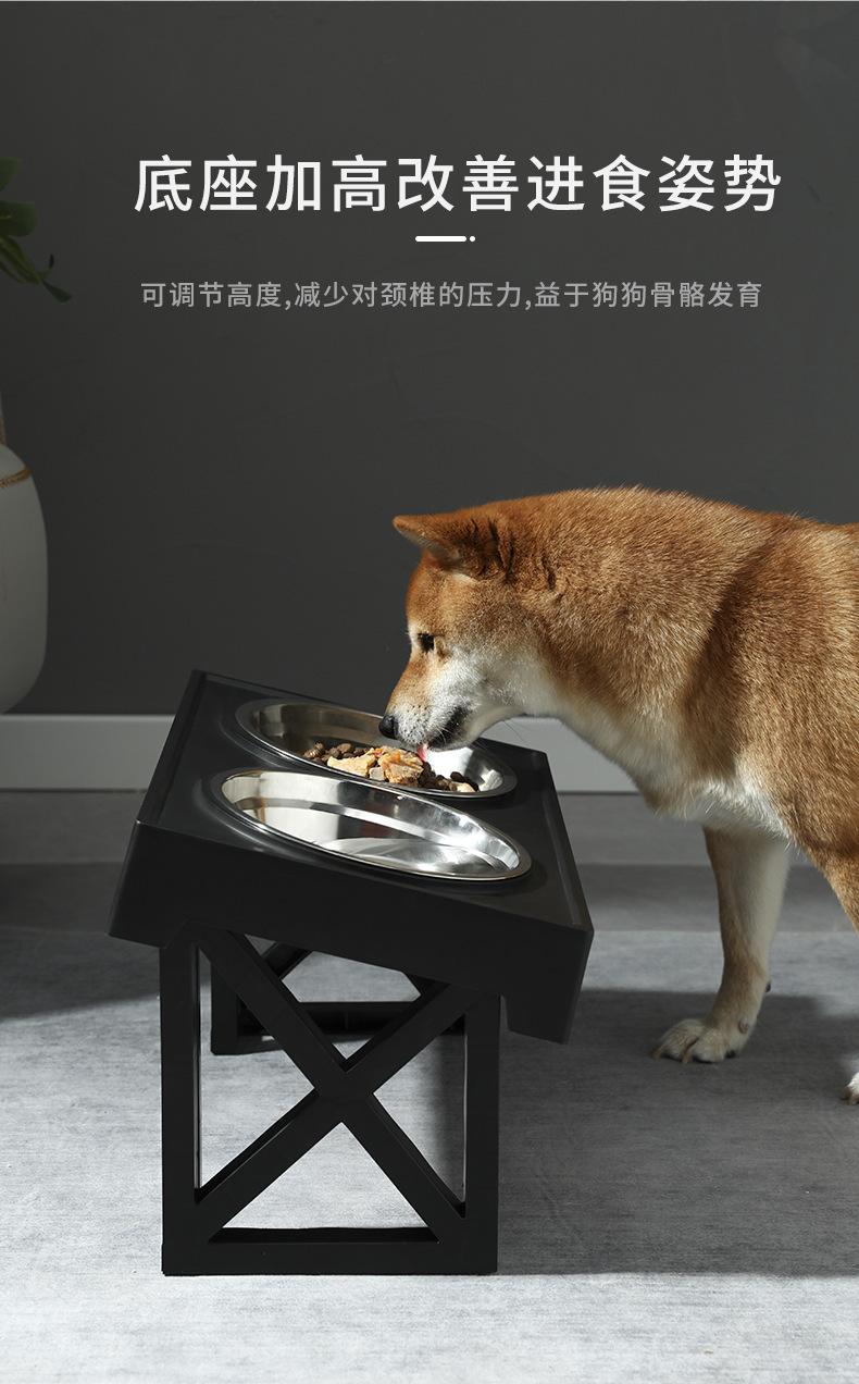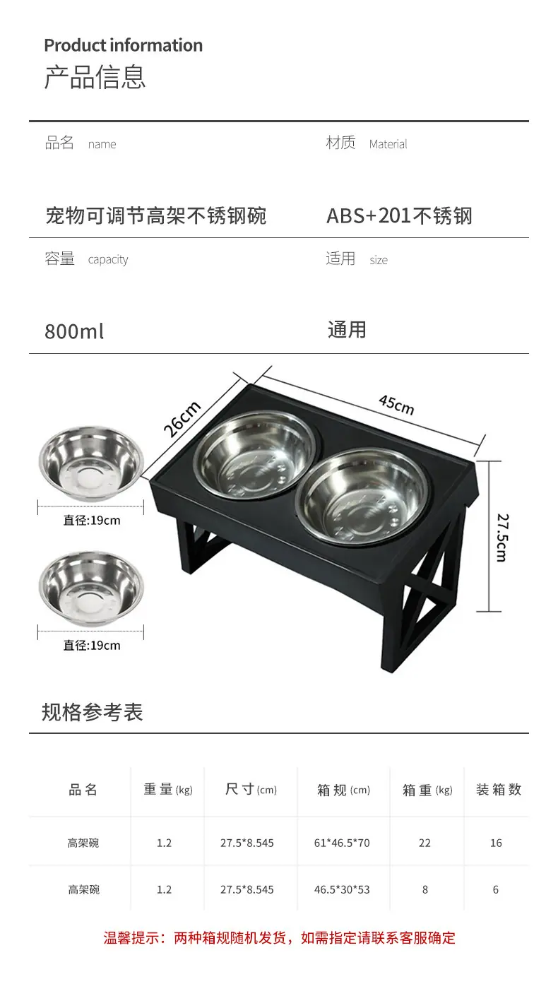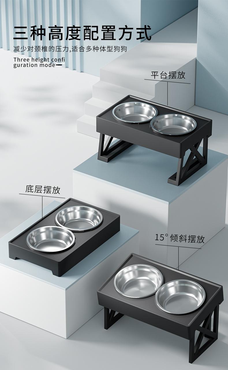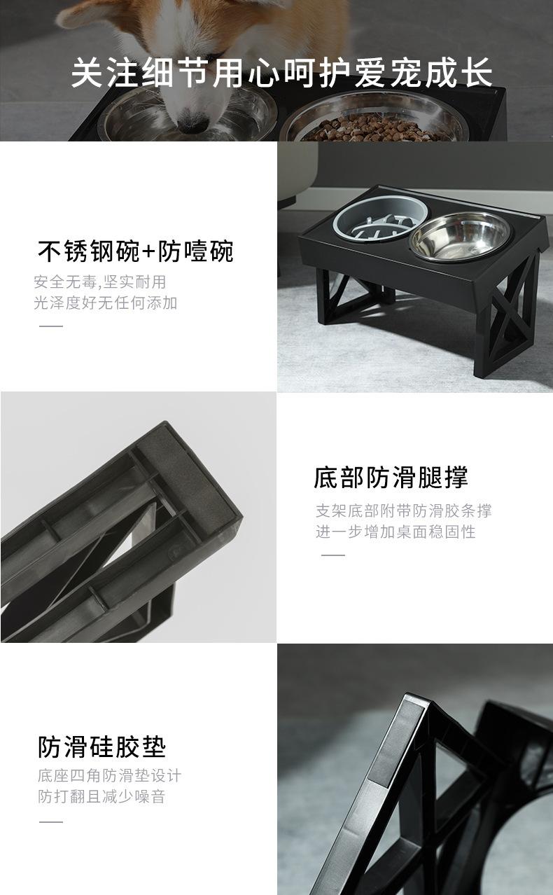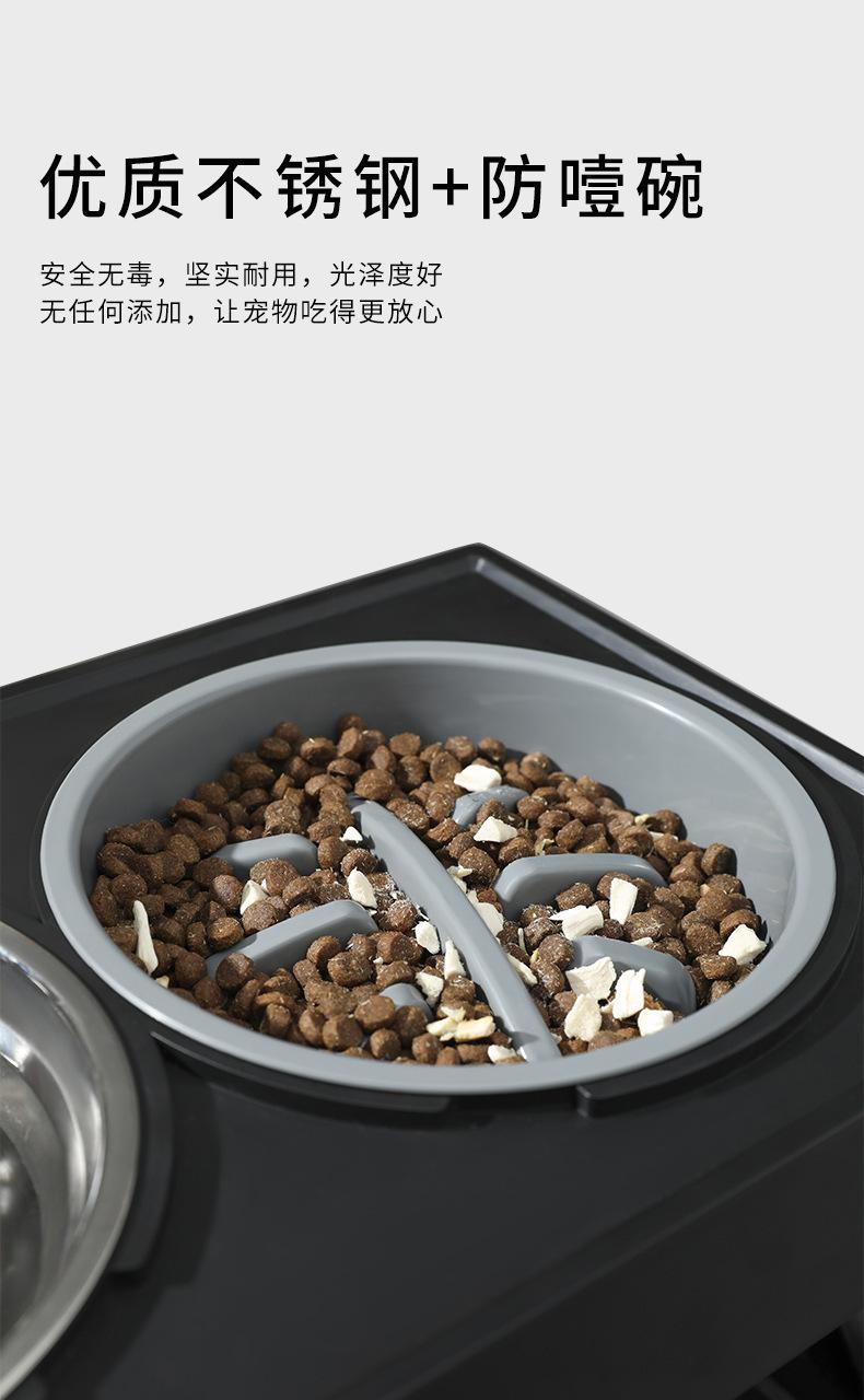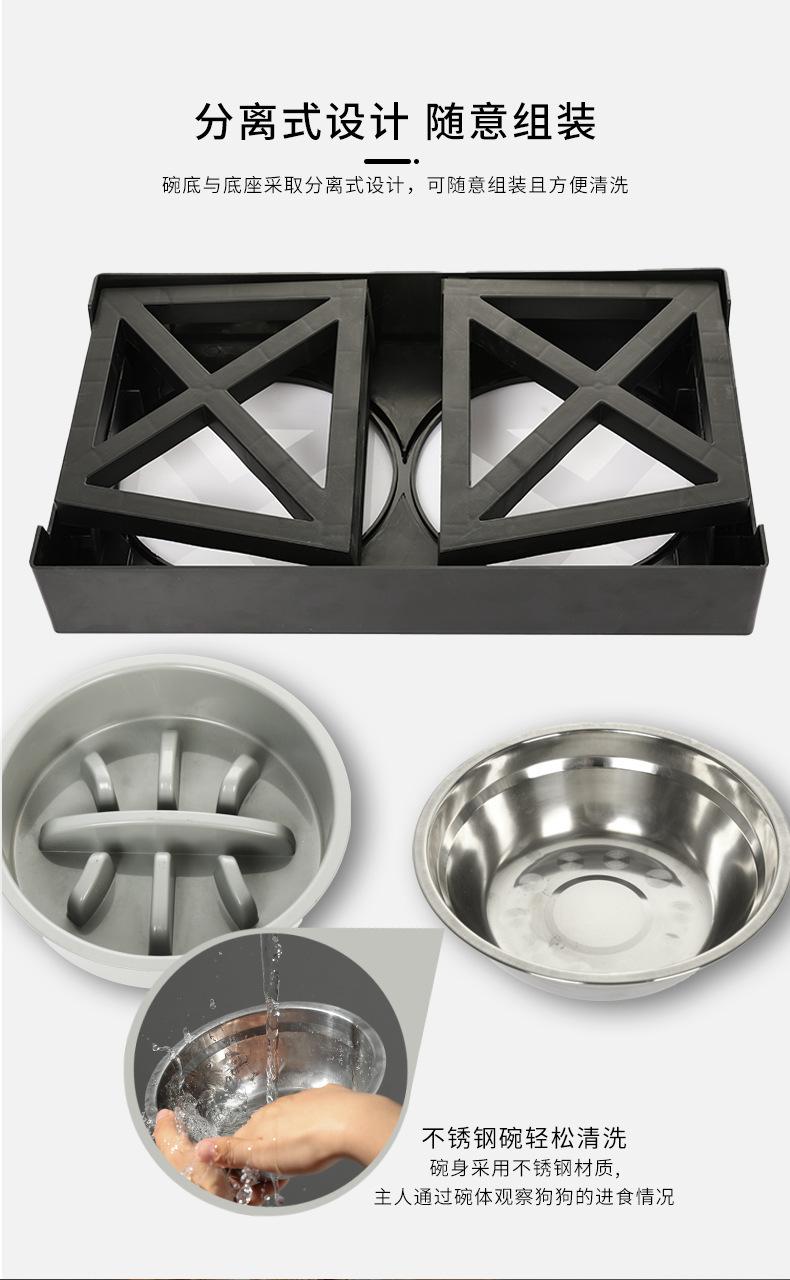 Tall dog bowl stainless steel double bowl, Stainless steel bowl + slow food bowl, Elevated bowl - gray, Black ...