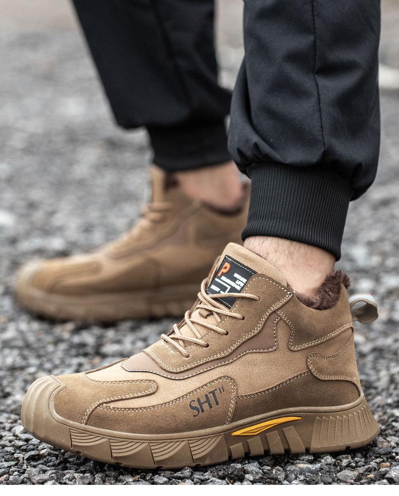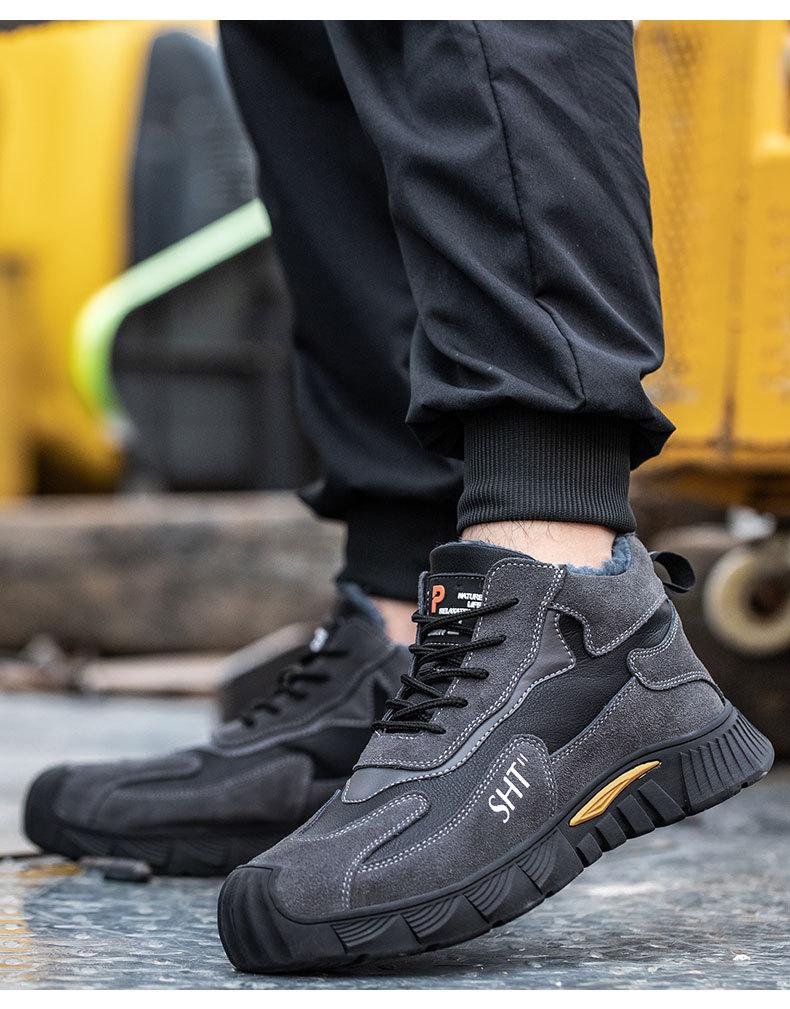 Sapatos de proteção ao trabalho transfronteiriços Sapatos de algodão quente forrados de lã Sapatos masculinos de inverno anti-esmagamento antifuro Sapatos de trabalho de soldagem elétrica isolados resistentes ao desgaste para homens