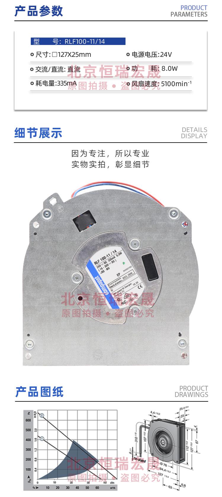 RLF100/11/14 ebmpapst novo ventilador original DC 8W 24V 335mA
