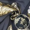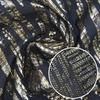 Tipo/Nome: Tecido jacquard com fundo preto e fios dourados e prateados