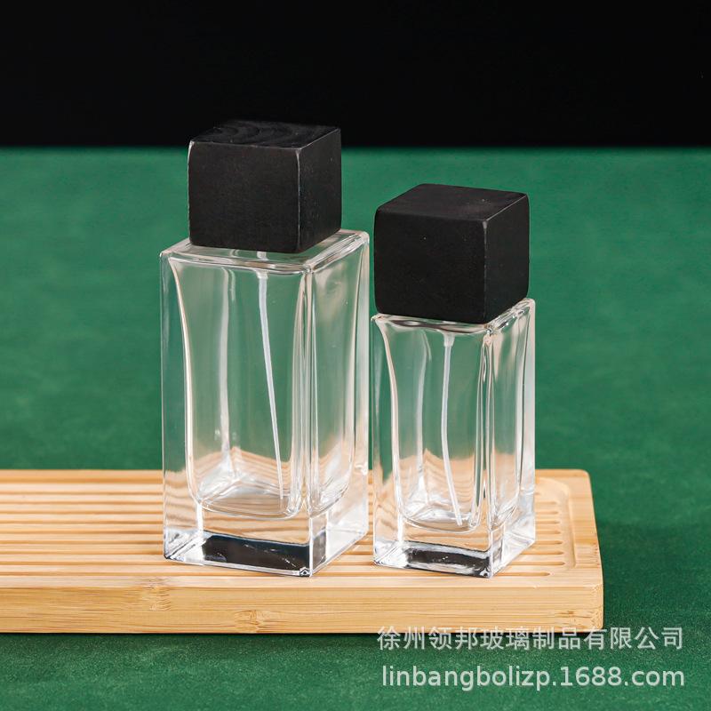 Compre Atacado 50ml baioneta frasco de perfume 100ml transparente frasco vazio frasco de spray cosmético tampa de madeira no atacado no Joom.pro