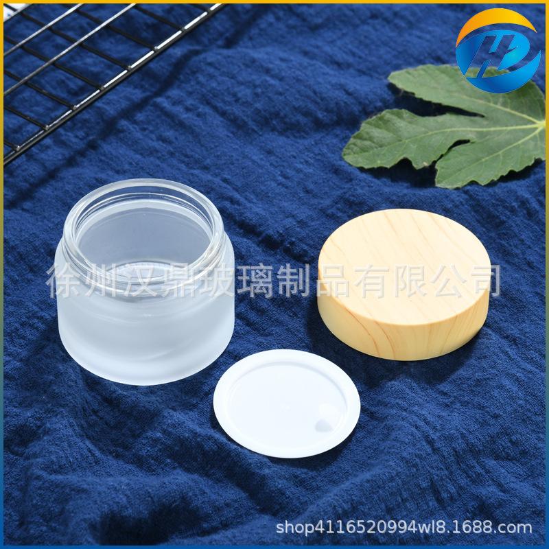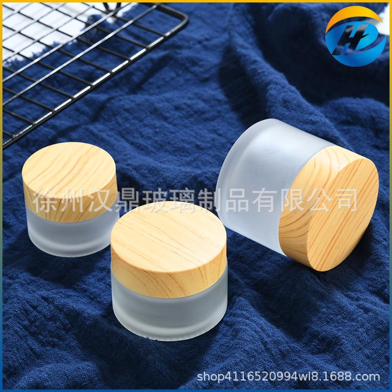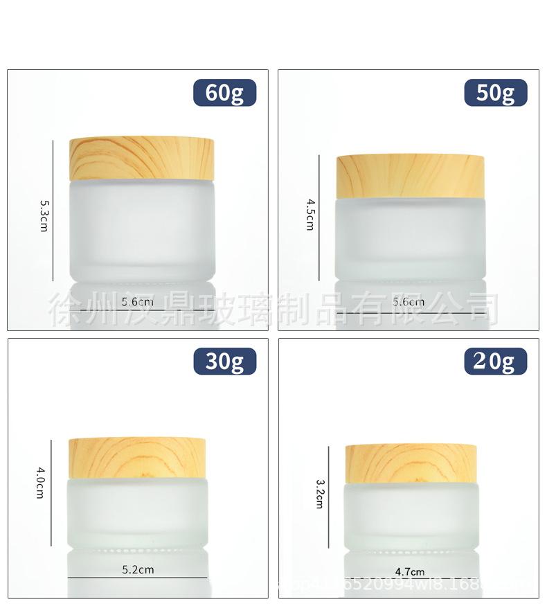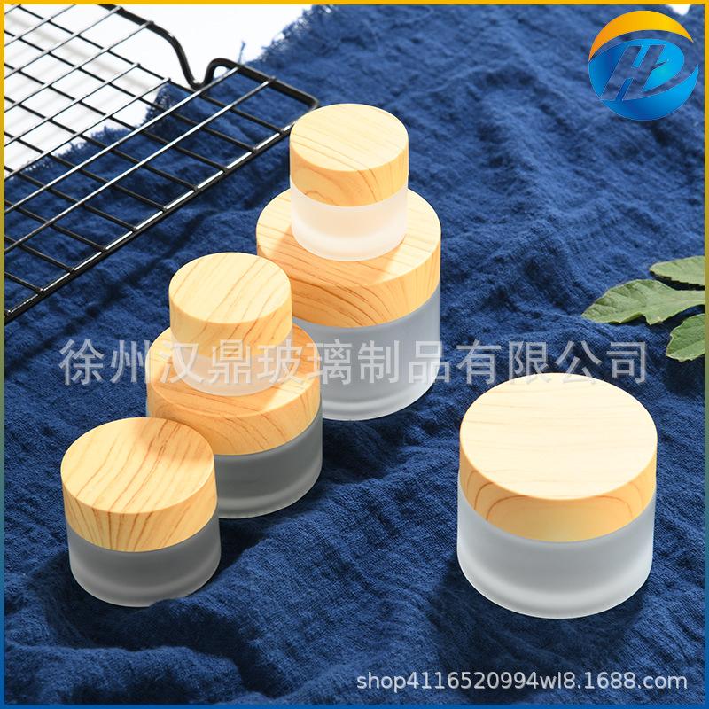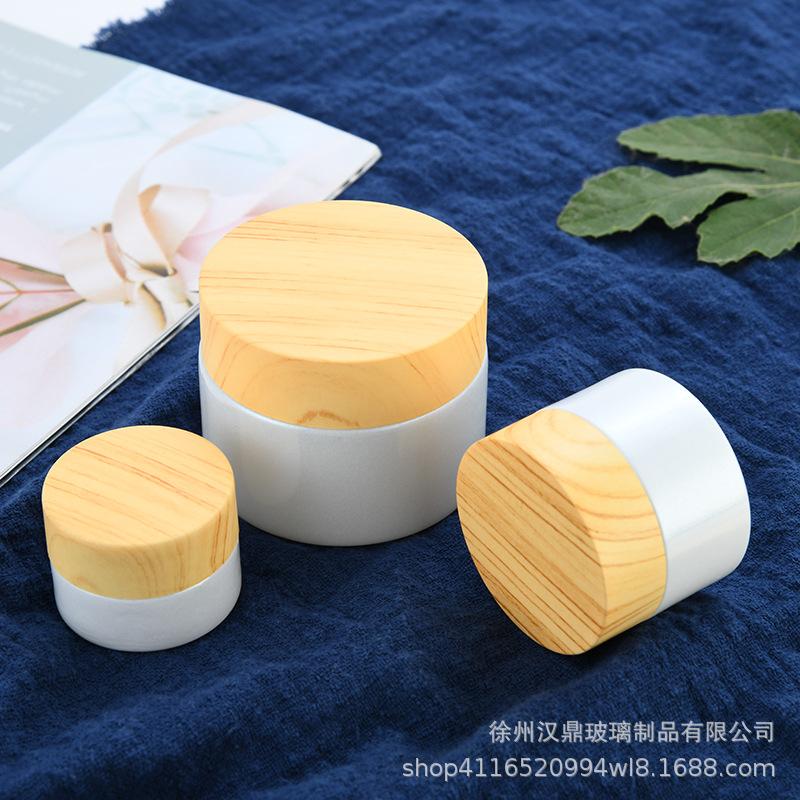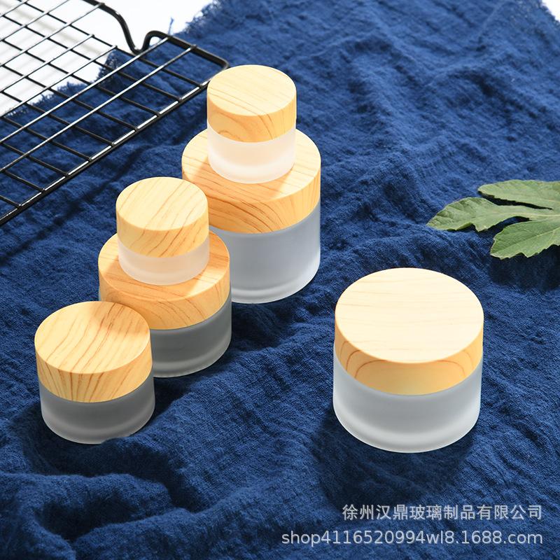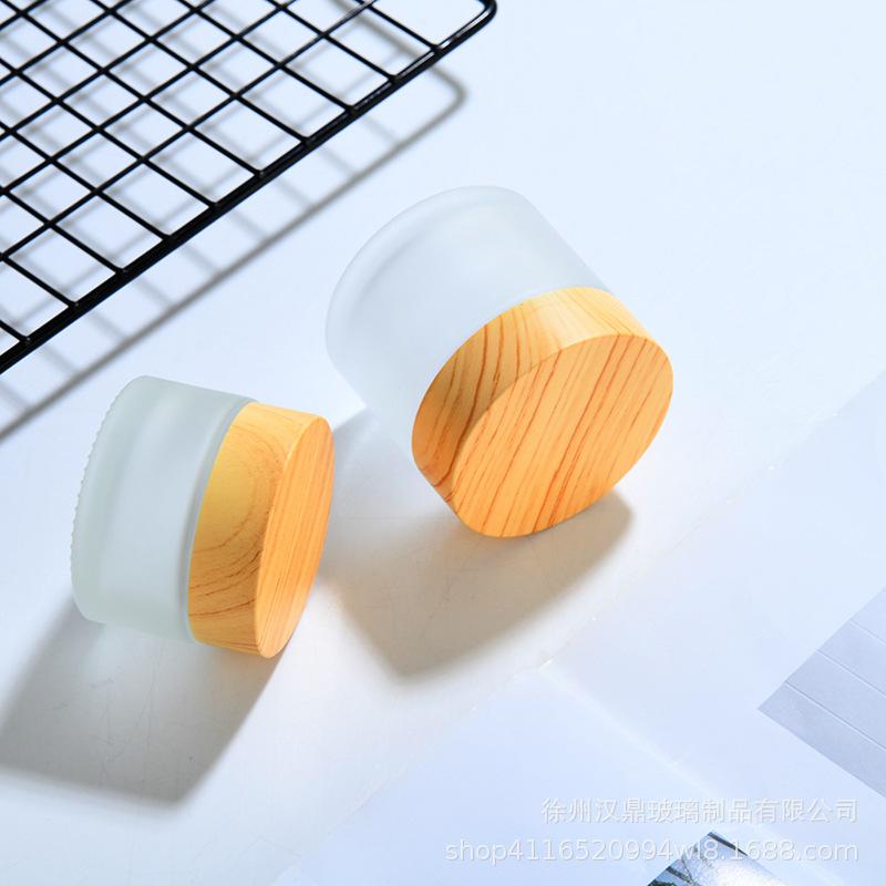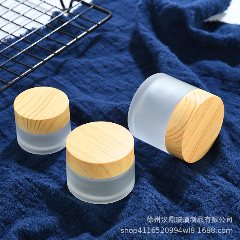 Frasco de Creme de Vidro Fosco Frasco de Creme 50g30g20g15g10g Tampa com Grão de Madeira Frasco Cosmético Frasco de Creme