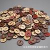 Fornecimento de botões de madeira impressos, botões redondos de dois olhos, botões retrô, botões DIY colados à mão