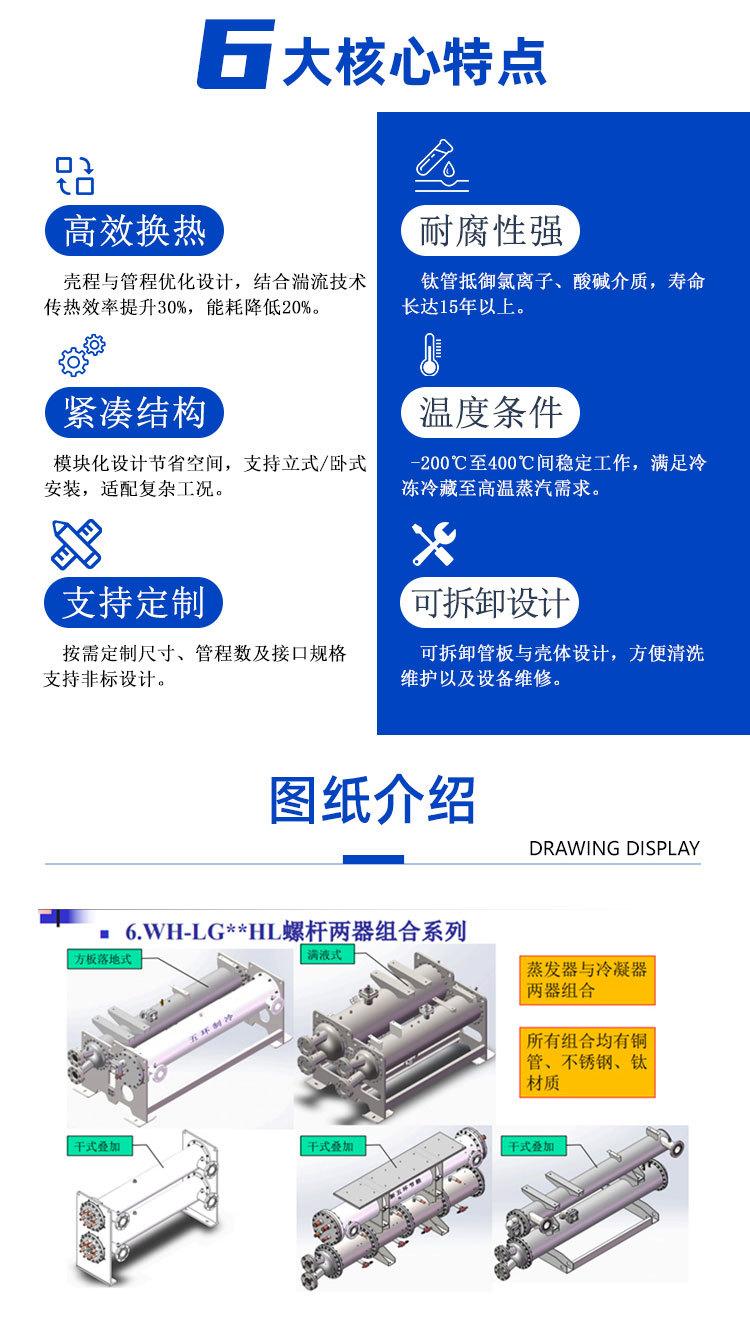 Unidade de Parafuso Trocador de Calor Evaporador Condensador Combinação Titânio Puro Aço Inoxidável 316L Resistente à Corrosão Ar Condicionado