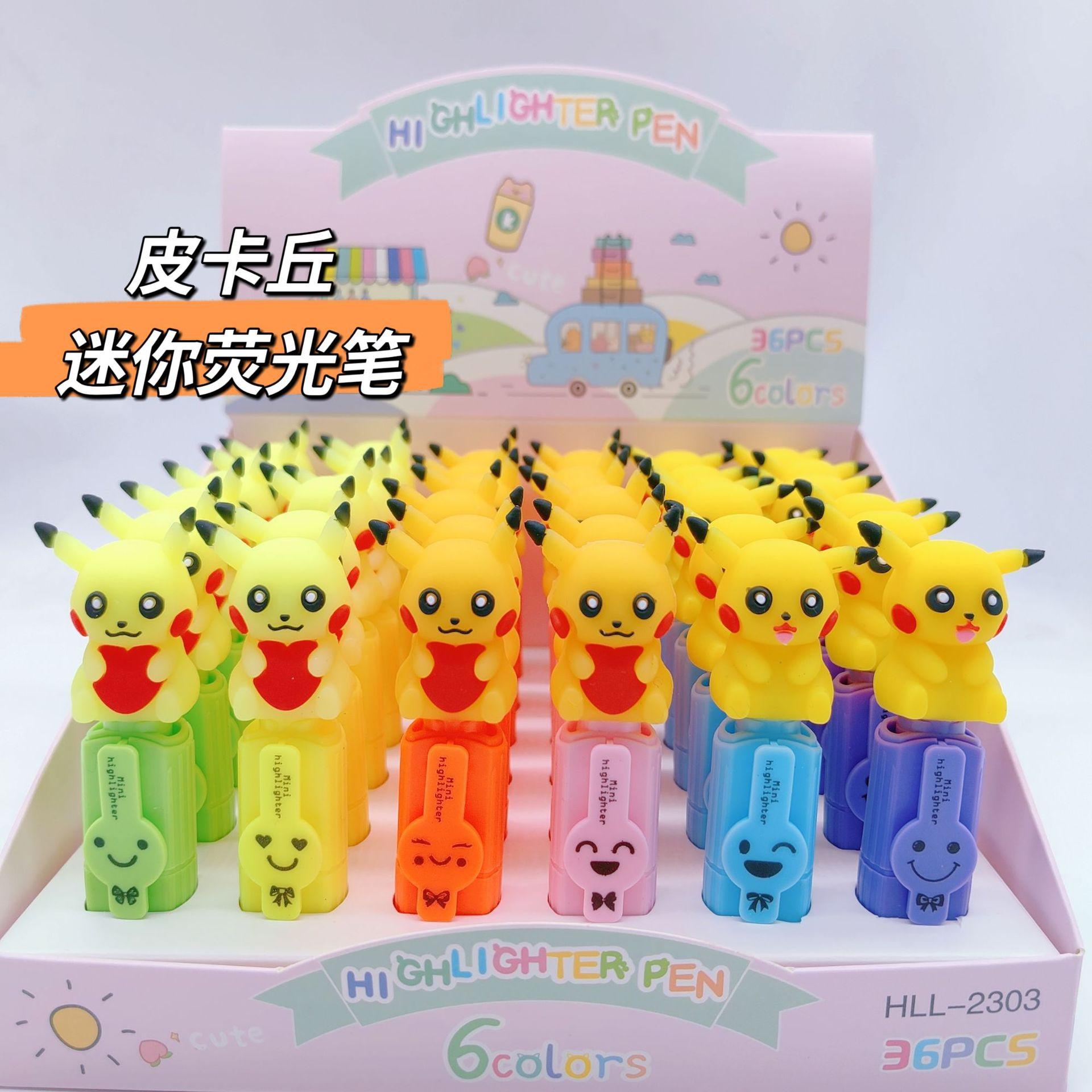 Bonito cartoon Pikachu mini 6-color marca-texto terno estilo de alta aparência estudante marcador de cor