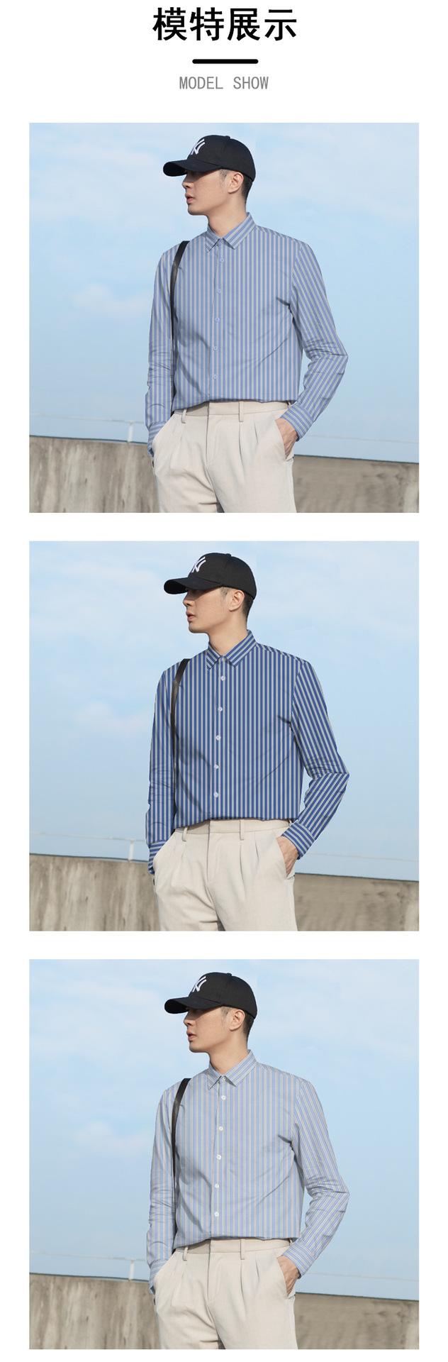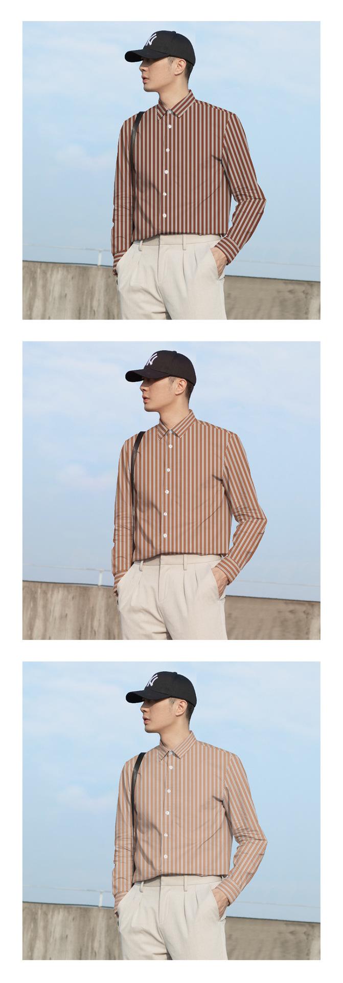 Camisa listrada com impressão digital Tecido masculino de manga comprida Novo estilo Casual Top Trendy Tecido sem ferro de negócios slim-fit de alta qualidade