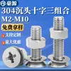 304 aço inoxidável escareado, porca, porca, terno Cruz cabeça chata, parafuso, combinação de parafuso, M3M4M5M6mm, atacado