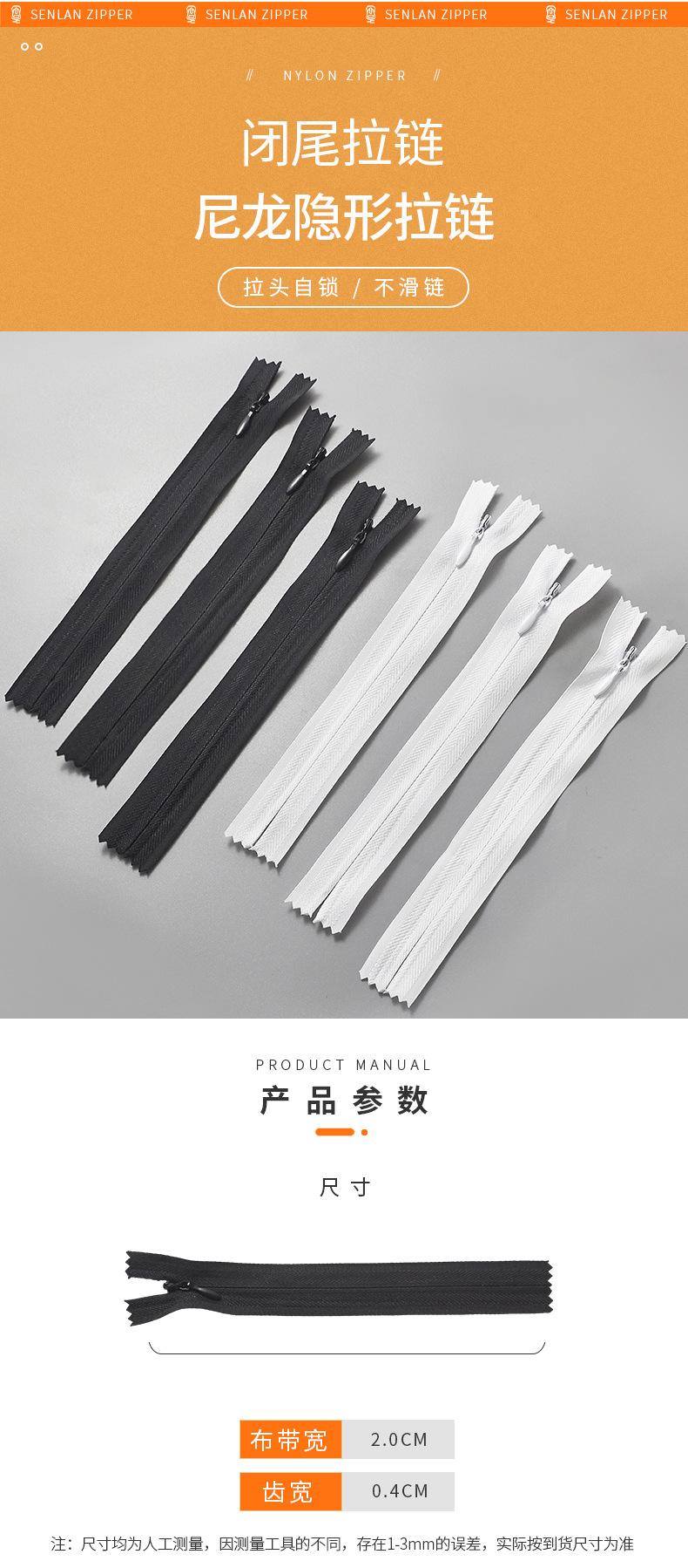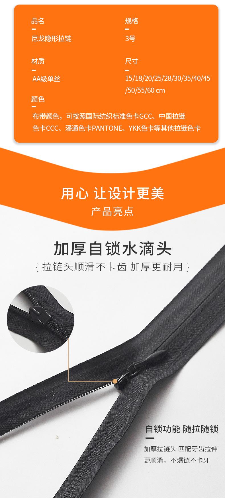 Senlan Não. 3 nylon zíper invisível único slider cauda fechada vestido calças travesseiro saco zíper atacado