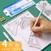 Deli Papelaria 9597 conjunto de terno de estudante de régua régua transparente régua + régua triangular + transferidor papelaria conjunto de 4 peças