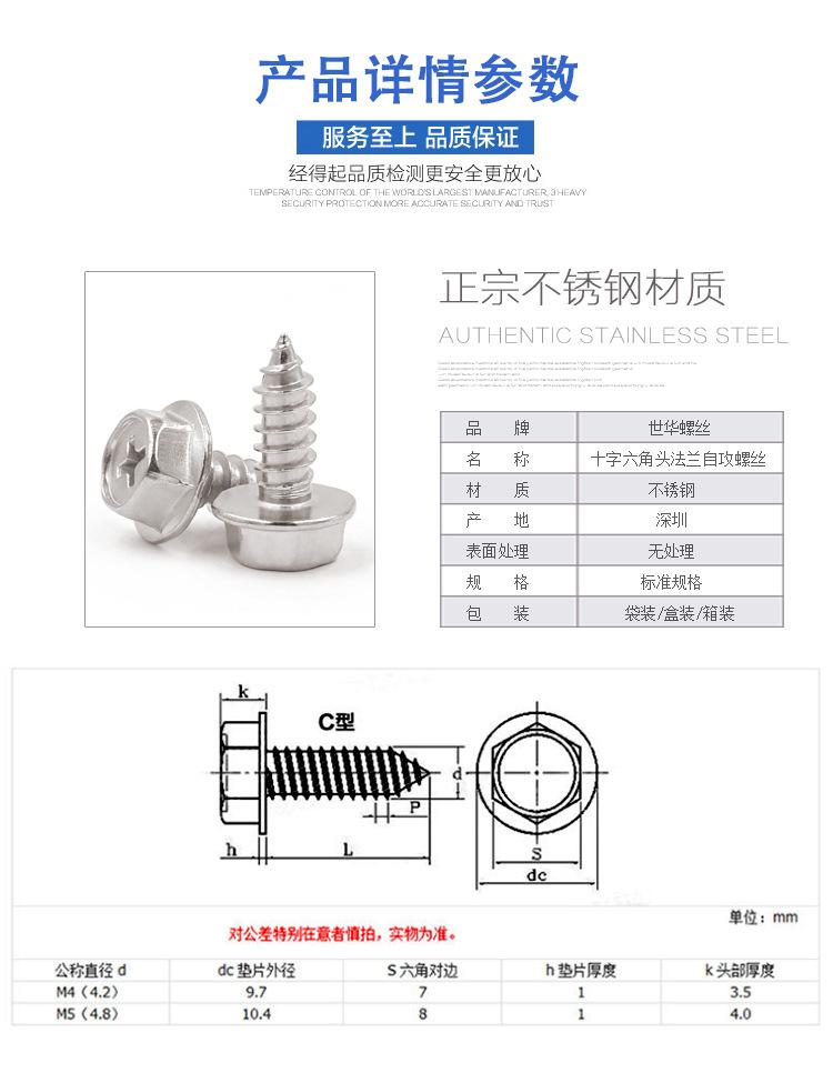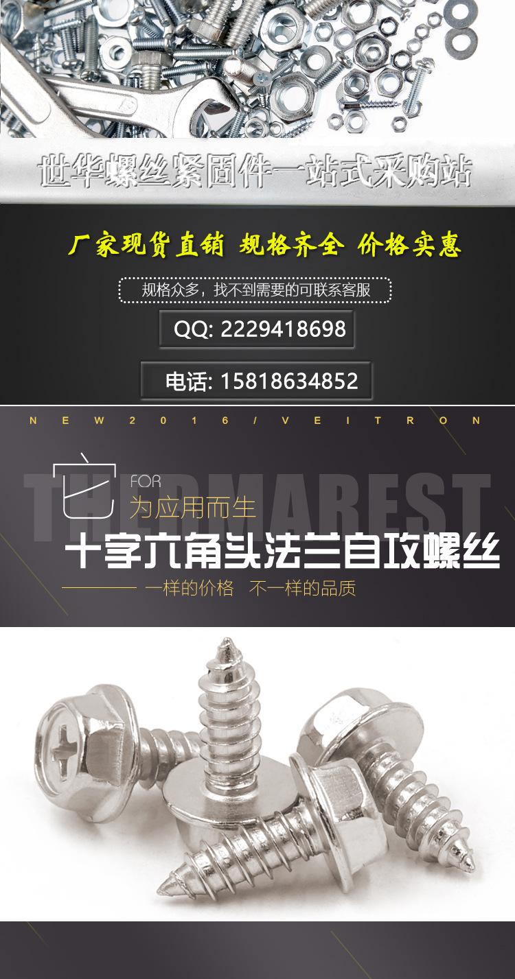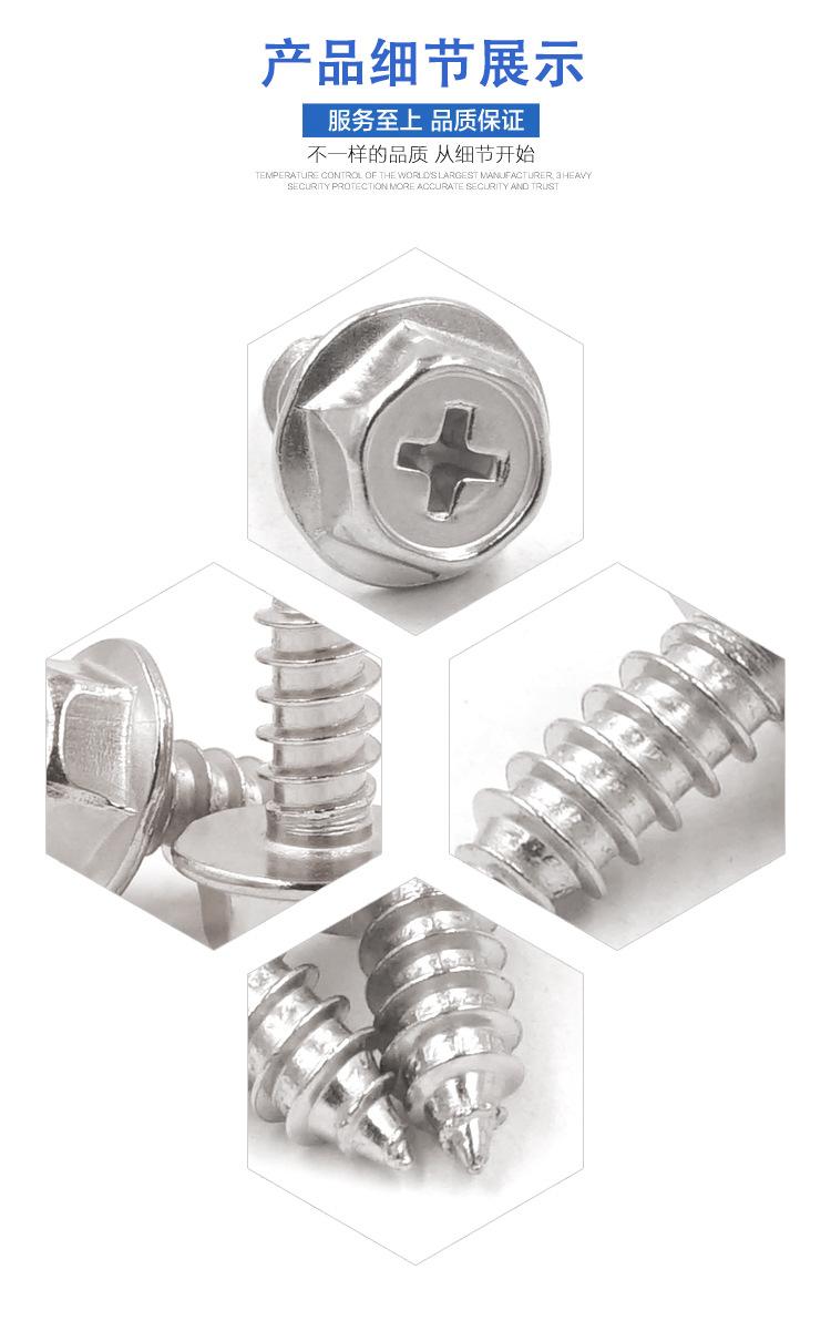 304 flange transversal de aço inoxidável parafuso auto-roscante bolso cabeça hexagonal parafuso auto-roscante hexágono cruzado parafuso auto-roscante